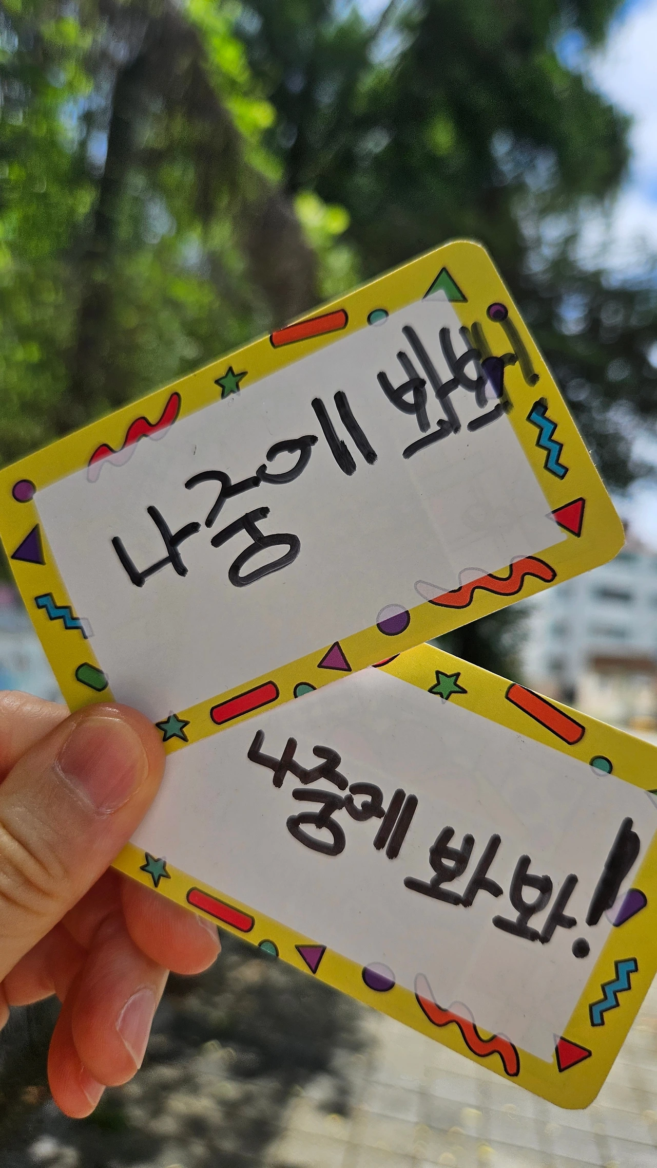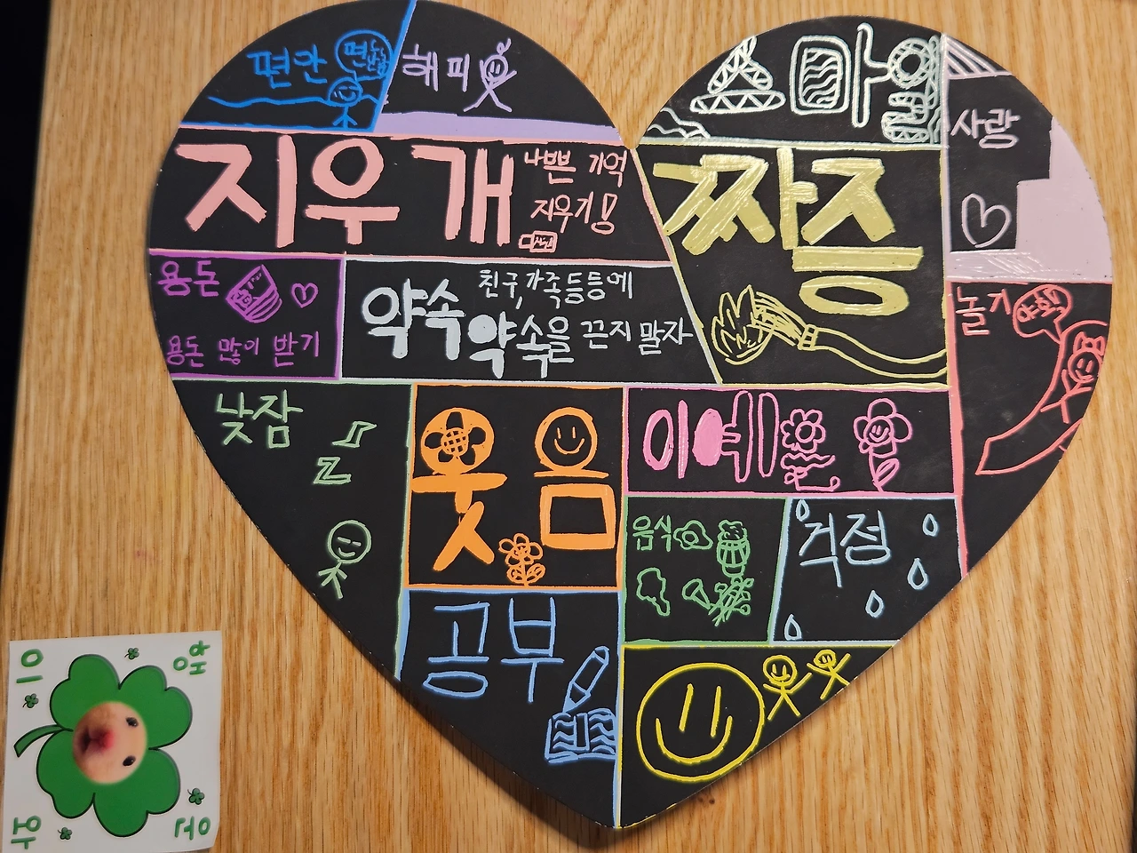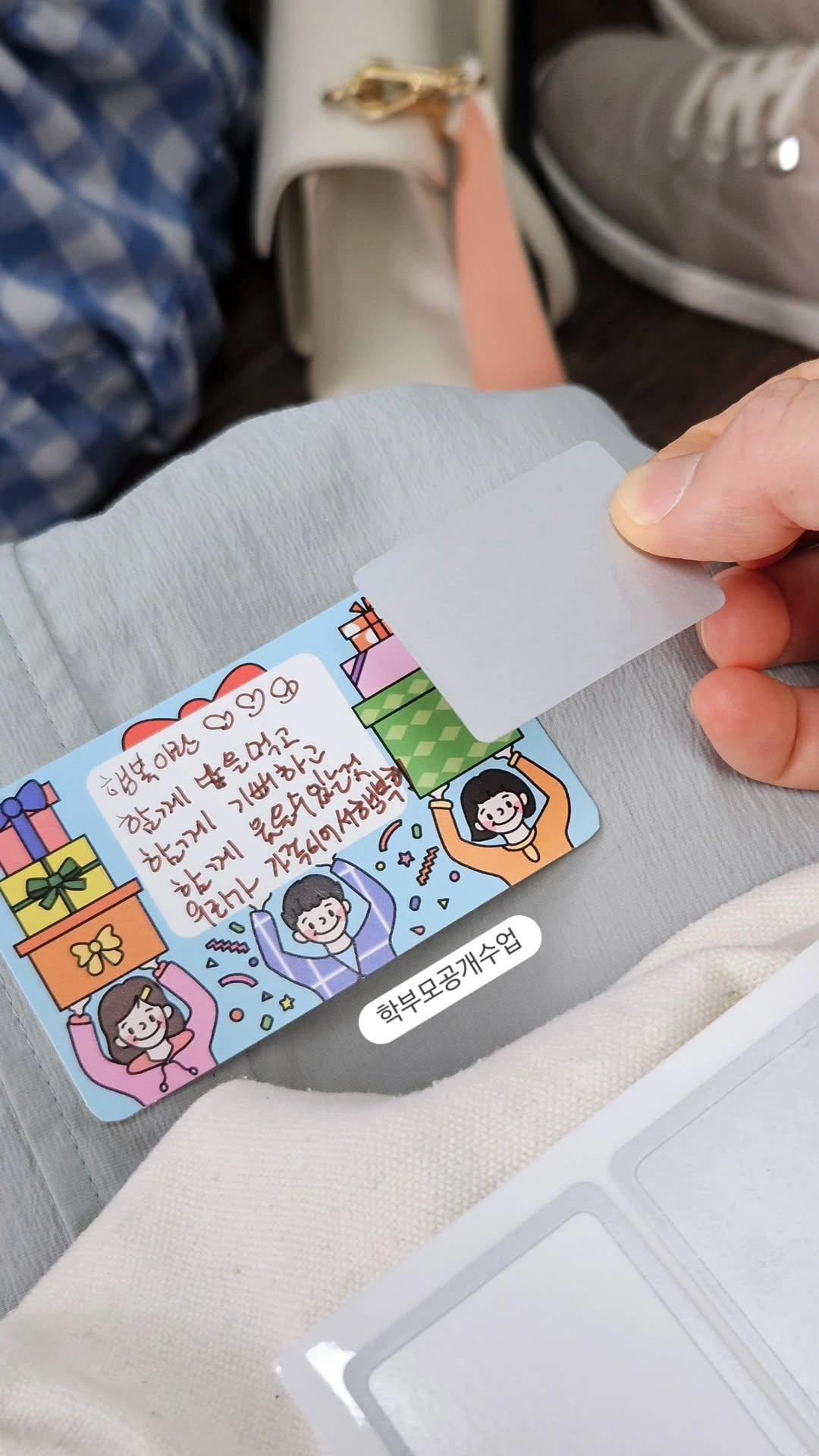 붙인 다음 자녀들에게 행복 엽서를 전달했어요