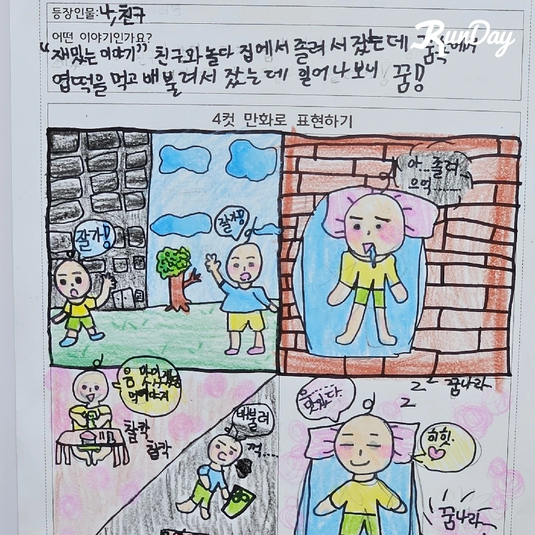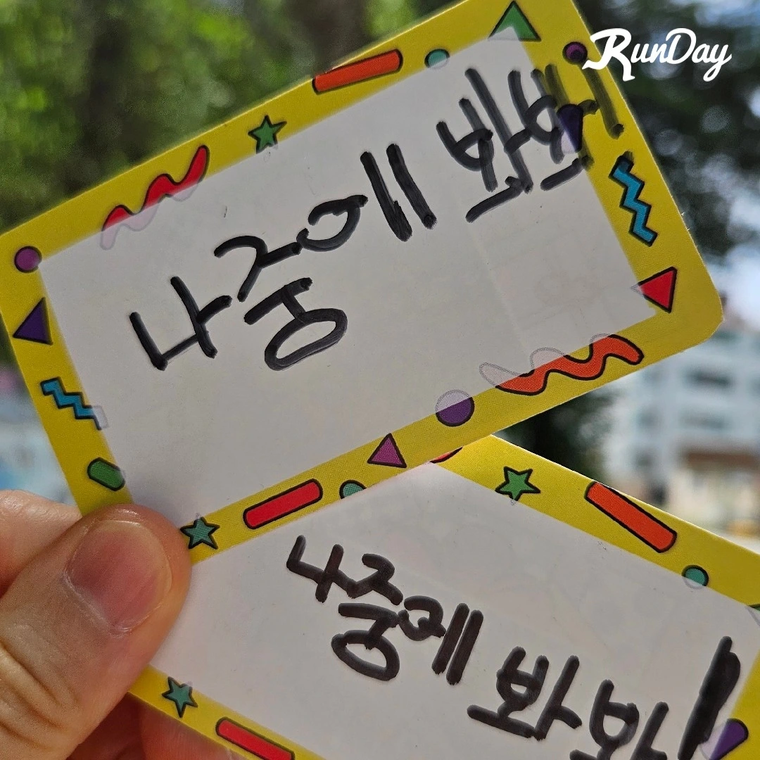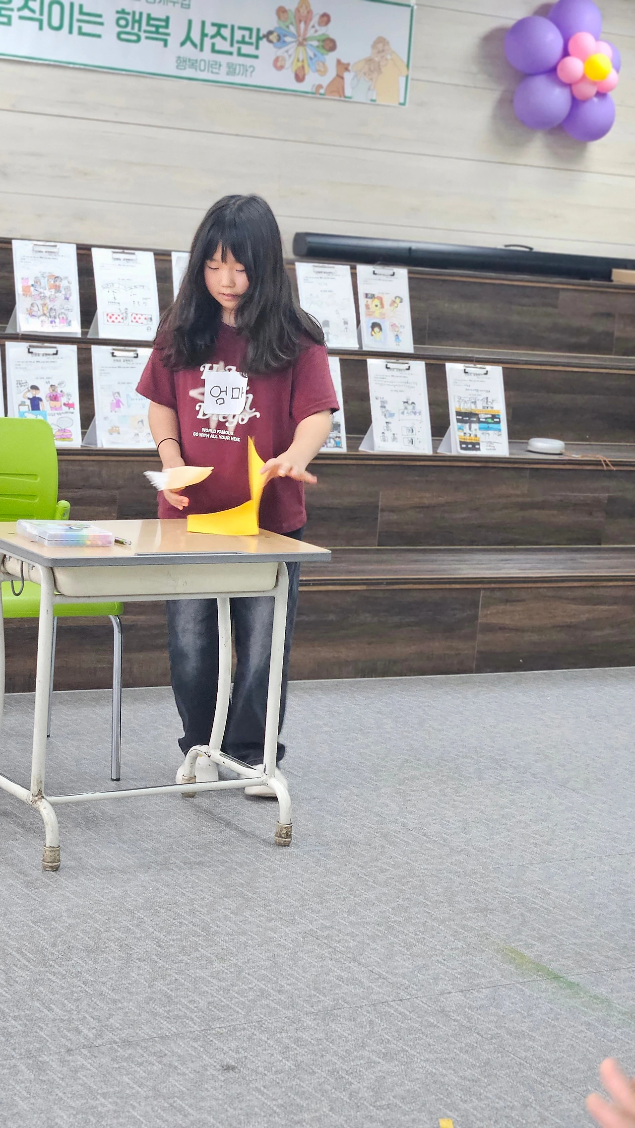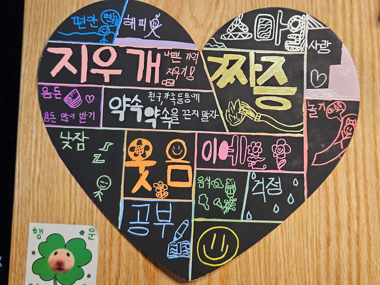 붙인 다음 자녀들에게 행복 엽서를 전달했어요