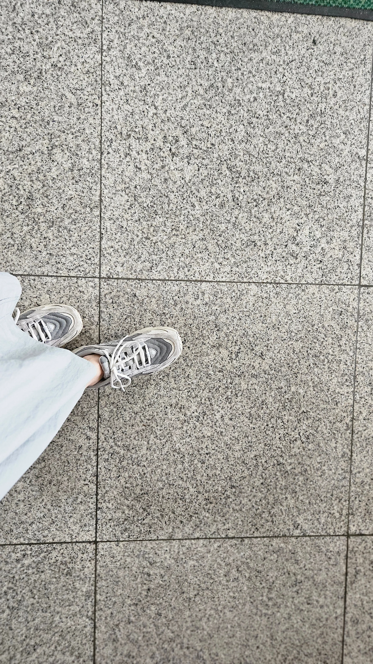 민트색 원피스를 꺼내 입고 신발은 뉴발 00 회색빛 운동화를 신었어요
