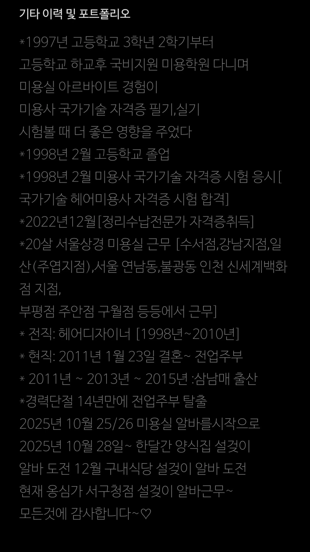 이곳 미용실 원장님이 마음 편하게 대해 주시고 그동안 경력단절 14년이나