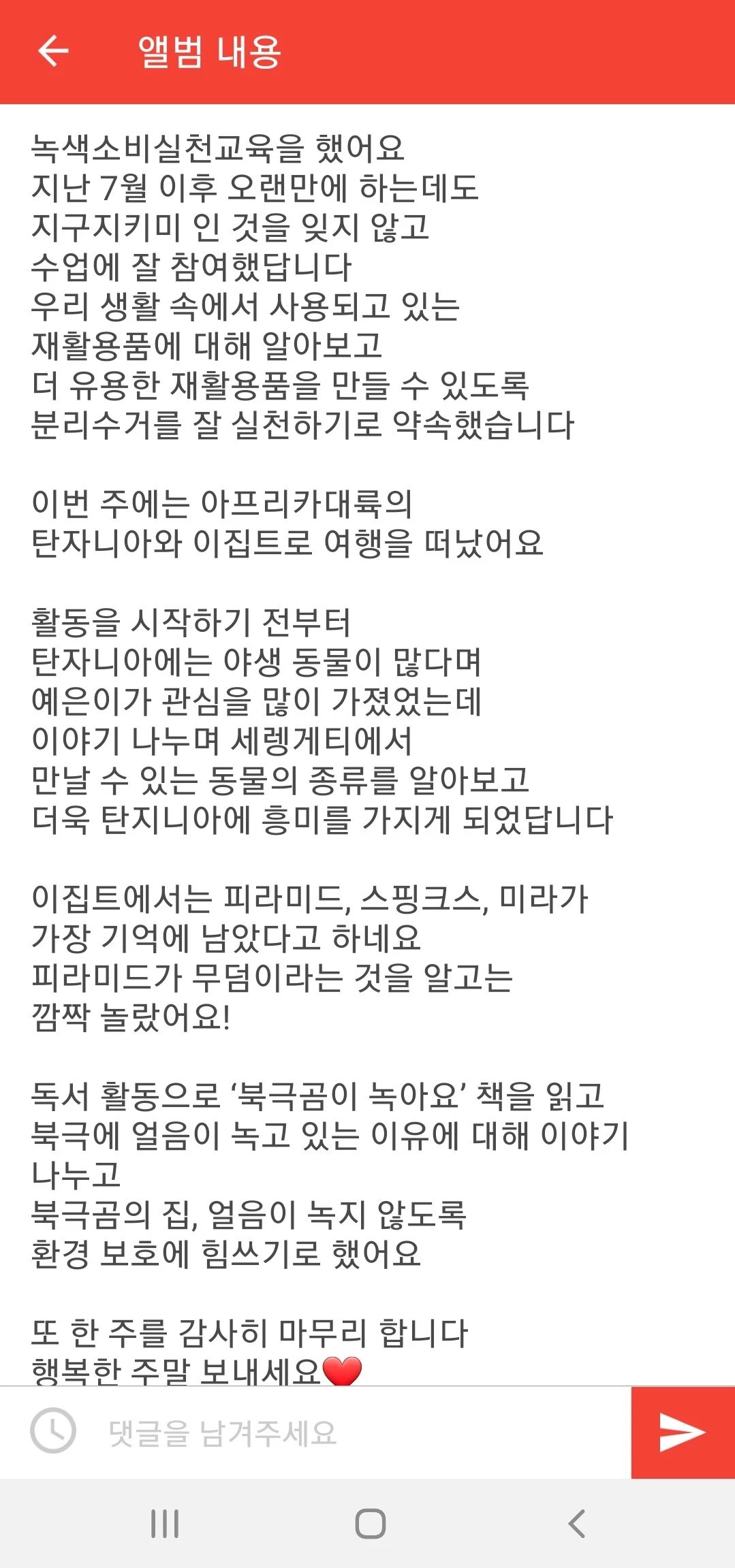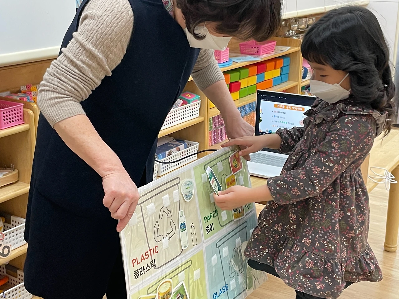 지난번에 안전 선생님이 왔어 그런데 지구가 아파해서 쓰레기도 분리수거하고 그다음에 쓰레기 잘 버리고 오래된 인형은 버리고