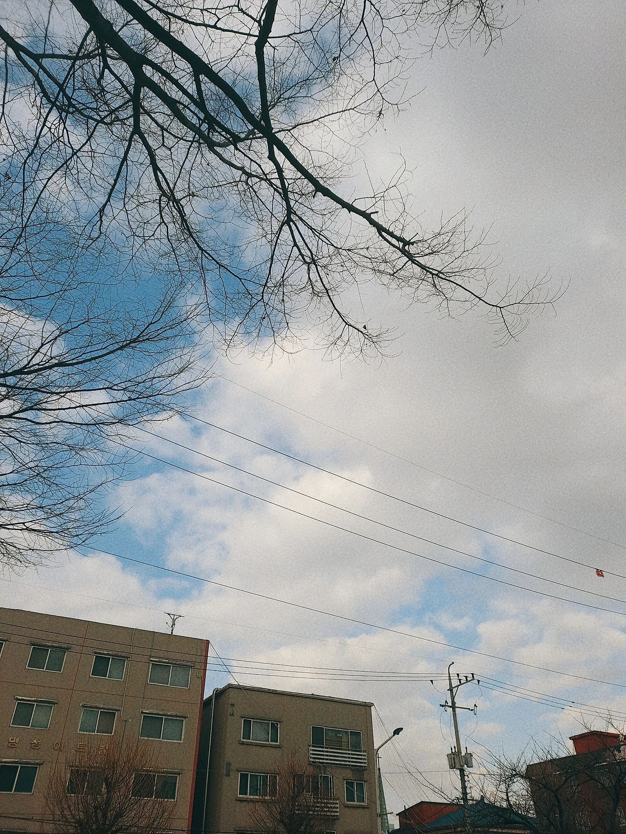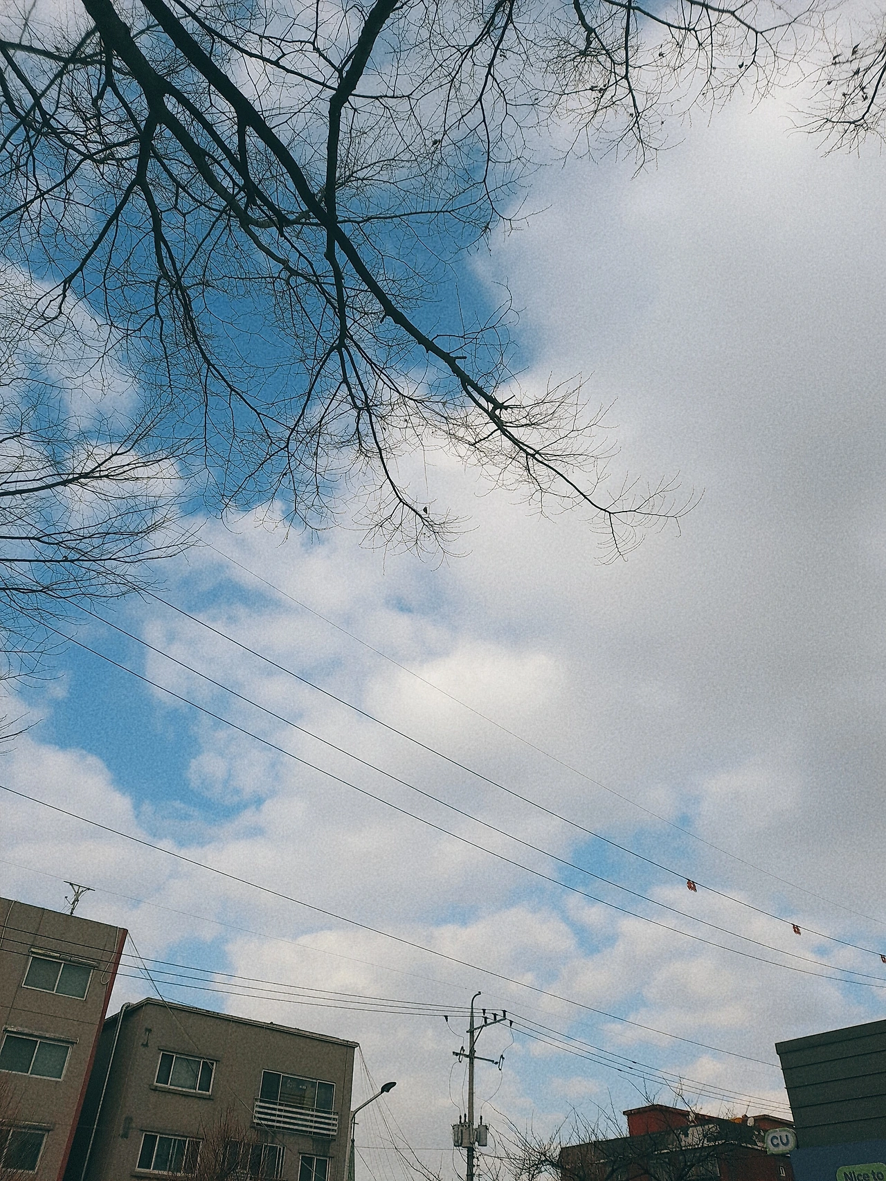 분주한 아침 아이 등원시키고 마주친 겨울 하늘에 감사해요