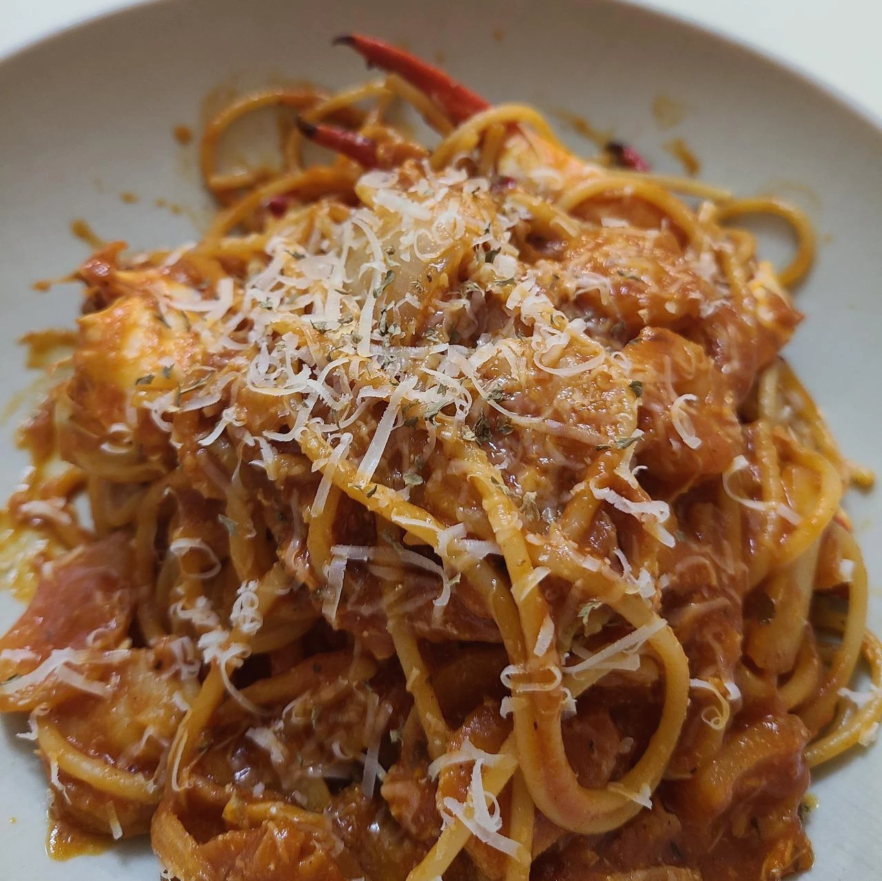 오늘 남편이 만들어준 꽃게 토마토 파스타.