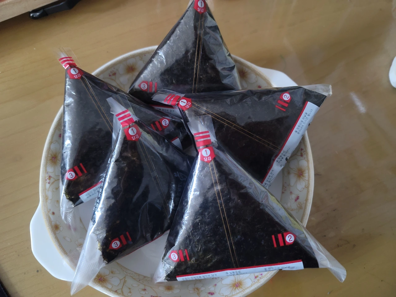 달인 김병만 아저씨의 삼각김밥김과 삼각틀의 도움으로 오늘도 반찬 없이 멸치스팸삼각김밥을 속사포로 5개 만들어낸다.