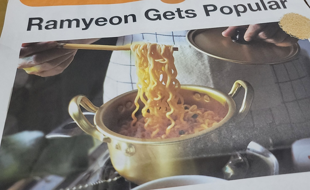 <아이가 보는 영자 신문에 실린 라면 기사 사진>