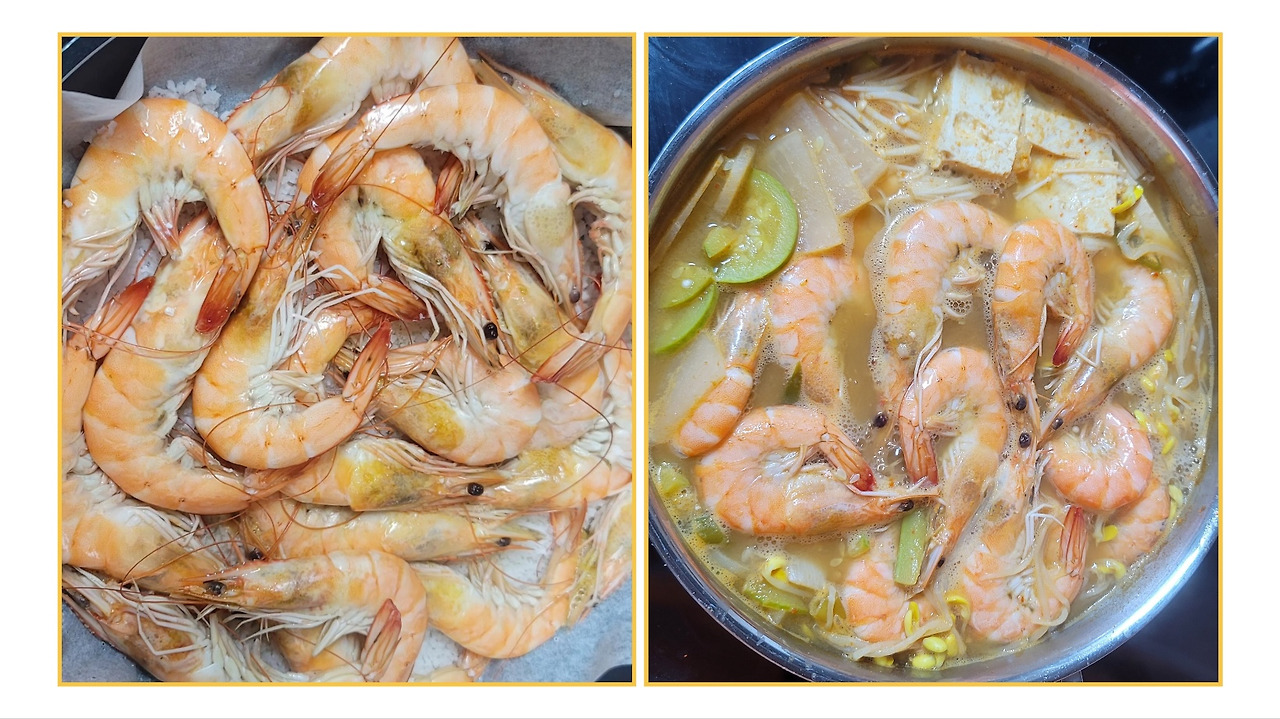 (내년에는 싱싱한 햇새우가 도착하는 날 남편의 회식 소식을 기다려본다. 그나저나 맘 편히 계속 해산물을 먹을 수 있을까?)