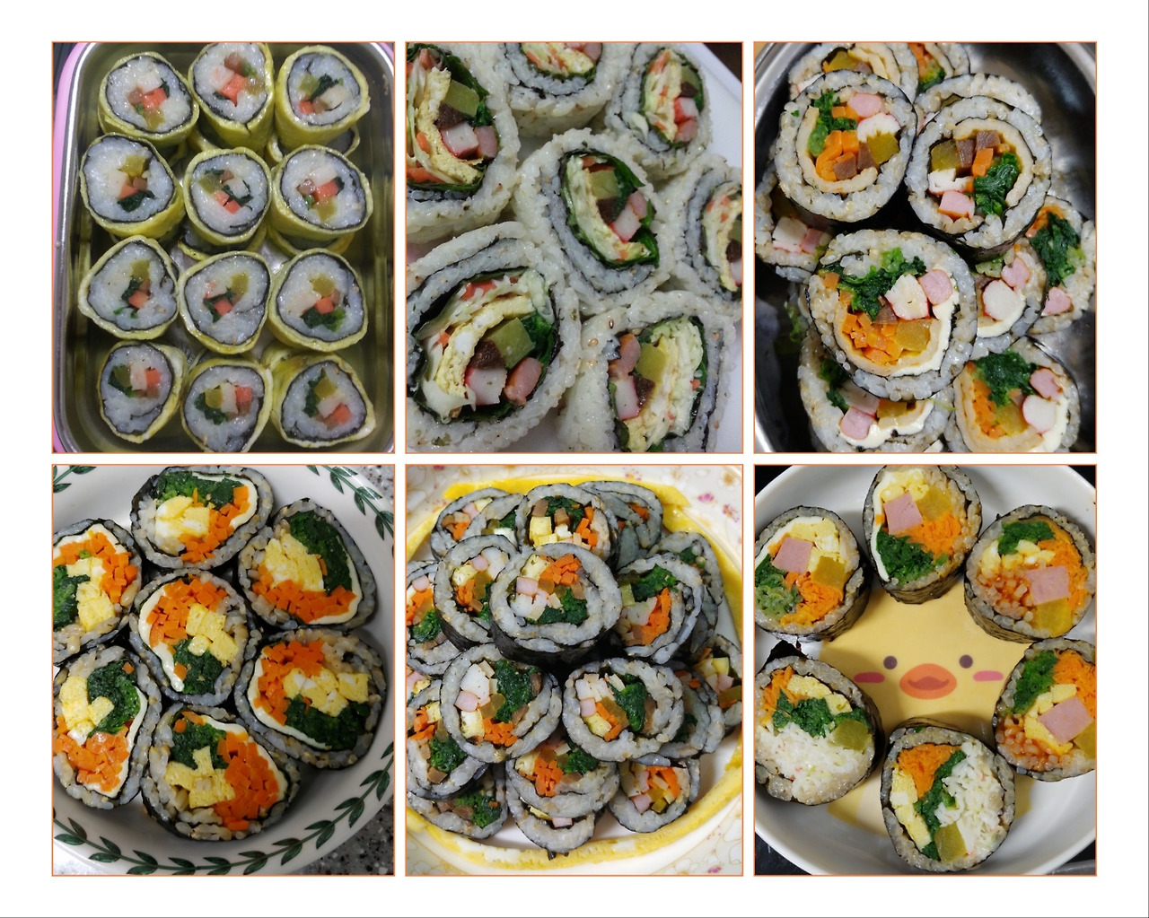 밥과 밥이 만나도록 부단히 노력했던 흔적들, 실패 한 적도 많고 탈도 많은 김밥에 얽힌 추억들은 결국 사진으로 남는다.