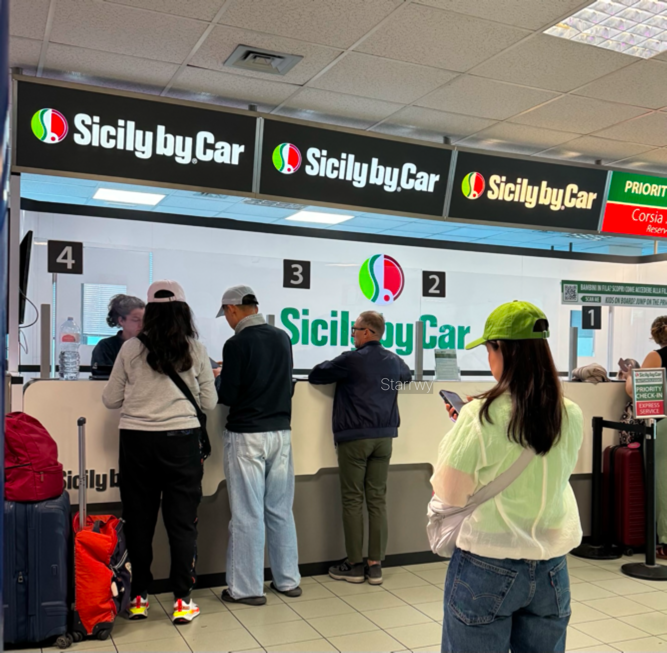 총 4개의 렌터카 창구 중 두 개는 로컬 창구, 하나는 노약자(priority) 전담, 나머지 하나는 인터내셔널 창구로 추정되는데, 그렇다고 로컬 담당이 인터내셔널 업무를 못하는 건 아니어보였다. 우리 앞의 인터내셔널 손님은 영어도 이탈리아어도 전혀 안 통하는 중국인 커플이었는데 절차 상 무슨 문제가 생긴 건지 모르겠지만 계속 창구 직원과 서로를 이해하지 못하겠다는 몸짓을 하며 격앙된 언성이 오갔고, 절차에 진척이 없어 시간도 엄청 오래 걸렸다. 뒤에서 대기하고 있는 우리도 동양인처럼 보이니까 중국어를 할 수 있는지 업체에서도, 그 커플도 물어봤지만, 안타깝게도 중국어를 할 수 있는 K는 교대로 아침식사를 하러 자리를 비운 상황. 차라리 도와줘서 우리 차례가 빨리 올 수 있었다면 도와줬을 거다. (그런데, 영어도 이탈리아어도 못하는데 어떻게 도로의 표지판을 보며 운전을 하려고 하는 걸까? 한편으로 좀 이상하단 생각이 들었다)