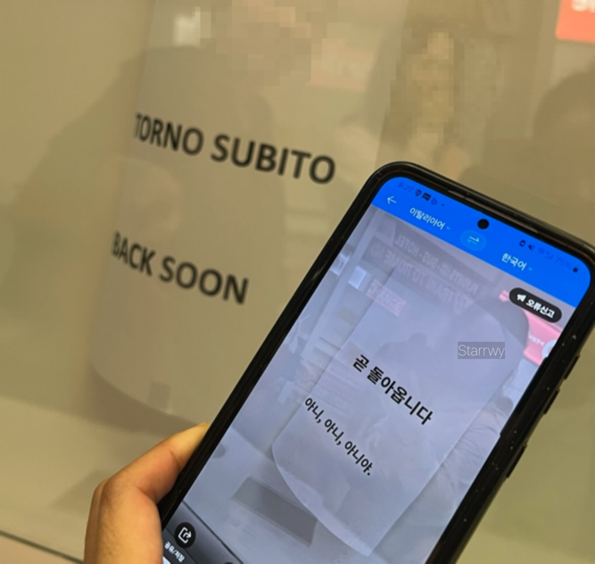 K와 Y는 한국에서 유심 바우처를 미리 사뒀기 때문에 부랴부랴 통신사 부스로 향했다. 그런데 웬걸, 너무나 유럽스럽게도 담당자가 곧 돌아온다는 종이를 붙여두고 자리를 비웠다. 분명 구글 지도에는 저녁 9시에 문을 닫는다고 쓰여 있는데, 저녁 8시인데 곧 돌아온다는 종이가 붙어있다는 것은 정말 잠시 자리를 비운 걸까, 아니면 오늘 영업은 종료했다는 걸까? 주변 부스에 있는 직원들에게 물어봐도 자신들은 모른단다. 그리고 심지어 40분을 더 기다렸는데도 담당자가 돌아오지 않을 때는?