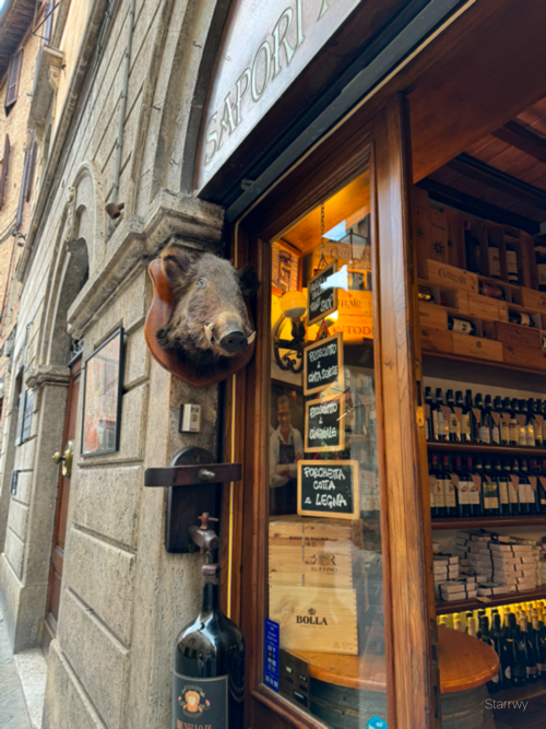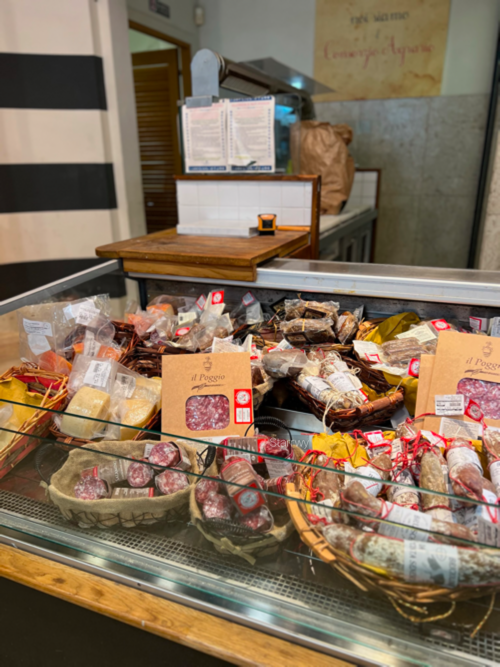 그렇게 동선에 있던 거의 모든 가게를 들락날락 하다가 어떤 식료품점에 다다르게 되었다. 감각적인 푸드 디스플레이 방식에 나도 모르게 홀린 것 같다. 트러플이 들어간 버섯 조림과 화이트 트러플 크림, 칸투치니 하나씩을 샀다. 칸투치니는 토스카나 지방의 과자인데, 말린 과일이나 아몬드 등의 견과류가 들어가는 살짝 딱딱한 과자다. 그래서 진한 커피나 스위트 와인에 찍어 먹는 것이 이탈리아 사람들이 주로 먹는 방식이라고 한다. 아무 것도 넣지 않은 플레인 맛, 아몬드를 넣은 맛, 피스타치오를 넣은 맛 등 종류도 굉장히 많았다. 트러플 버섯 조림과 크림은 한국에서 파스타를 만들거나 버섯 스프 등을 만들 때 요긴하게 사용할 것 같아 사봤다. 스테이크처럼 구운 고기에 얹어 먹는 것도 좋을 것 같은데, 한번 병을 열면 빠른 시일 내 소비하는 게 좋을 것 같아 여러 명이 모여 식사할 수 있는 기회를 기다리고 있다.