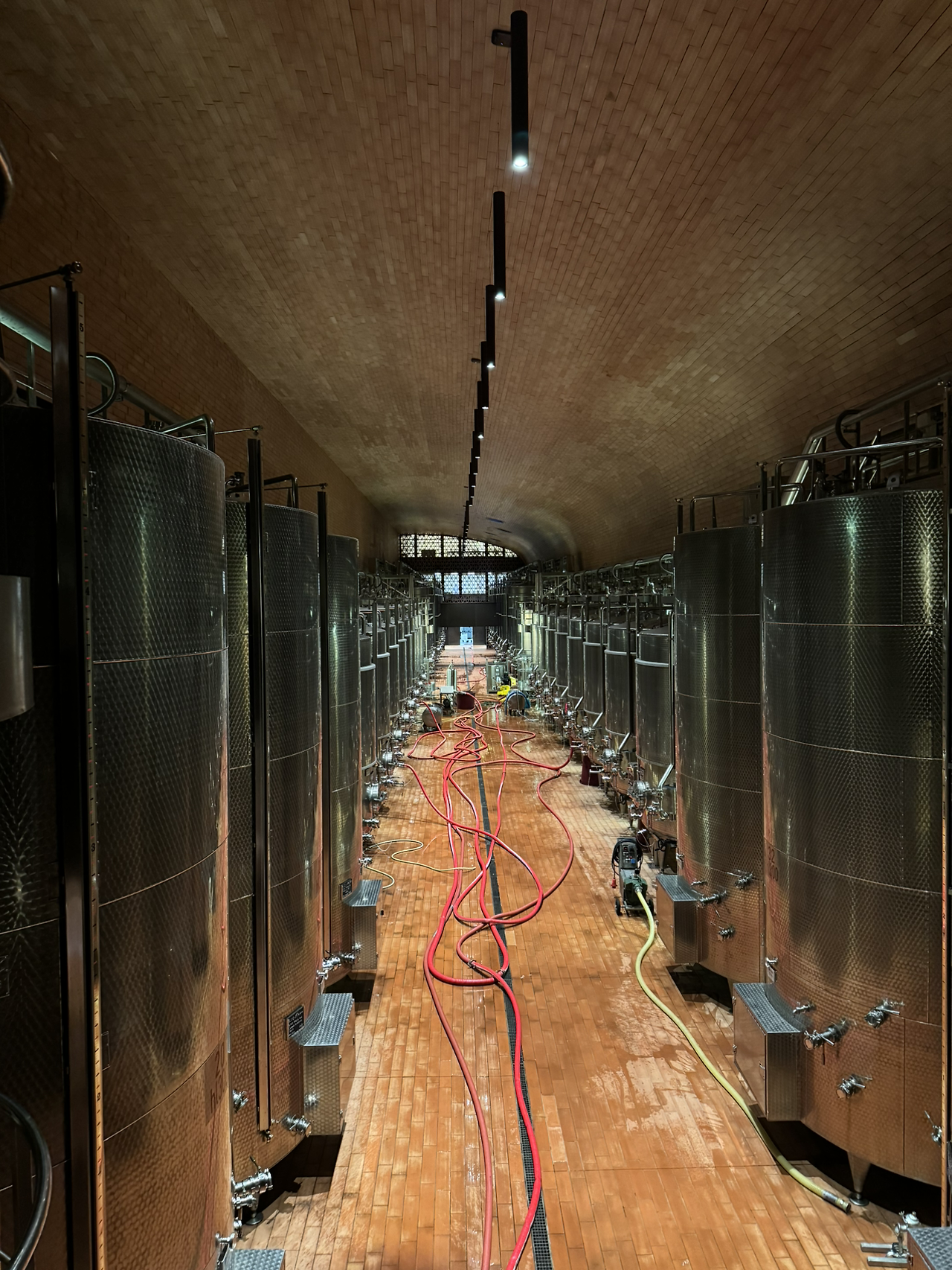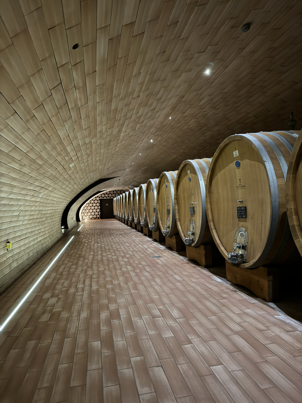 가장 먼저 안티노리 가문에 대한 설명을 해주고, 와인을 숙성하는 장소, 제조하는 장소, 병입하는 장소를 차례로 소개해줬다. 숙성이 진행되는 거대한 창고는 별도의 노력을 들이지 않아도 온도가 조절되는 친환경적인 방식으로 지어졌다고 한다. 건물 몇 층 높이의 숙성용 스테인리스 통과 오크 통을 볼 수 있었다.
