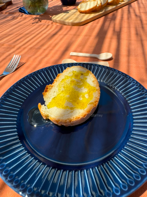 준비되어 있던 빵에 올리브유를 듬뿍 뿌려 입에 넣었더니 입 안과 코 가득 향긋한 올리브유향이 느껴진다. 점심 시간이 다가온 지라 맛있는 올리브유 탓(?)을 하며 빵을 잔뜩 먹었다.