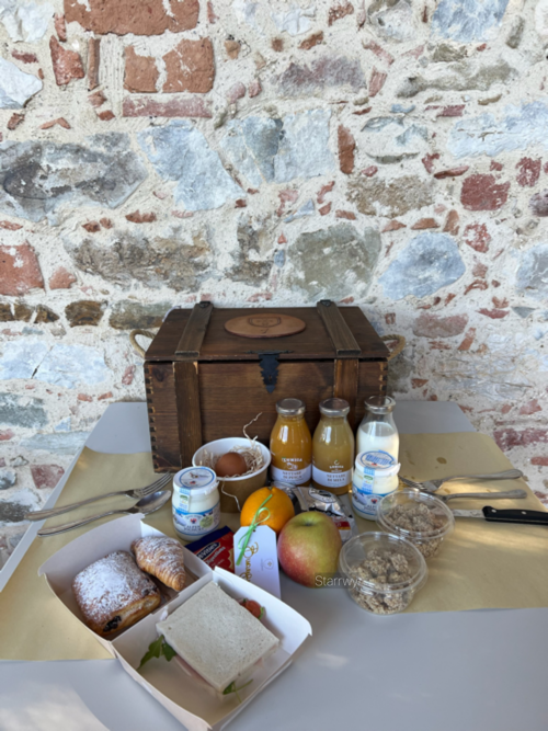 여기 저기 사진을 찍고 있자 하니 어제 전화로 리셉션에 주문해둔 조식 박스를 들고 스태프가 찾아왔다. Savory(짠 맛) 또는 Sweet(단 맛) 중에 선택할 수 있었는데, 나는 Savory를 택했다. K는 조식은 건너뛰고 싶다고 하여, 일단 박스 오픈! 샌드위치와 삶은 계란, 우유와 주스, 요거트와 그래놀라, 오렌지와 커피 캡슐 한 알씩이 들어있었다. 너무 귀엽다. 모두 재활용할 수 있는 자재로 구성된 게 꽤 세심했다. 이곳에선 이런 방식으로 환경을 생각하는 구나.
