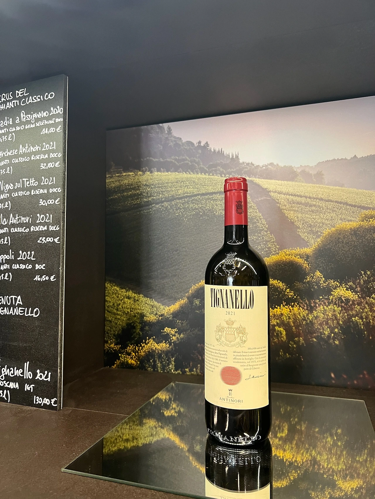 시음 장소 바로 앞은 더 다양한 종류의 와인을 시음해볼 수 있는 공간과 와인을 구매할 수 있는 기념품샵이었다. 비싸지만 한국에서 사는 것보다는 훨씬 저렴하기 때문에 슈퍼 투스칸 와인을 살 생각이 있었던 나는, 그나마 재고가 있는 21년산 티냐넬로를 한 병 면세로 구입했다. 황금 빈티지라고 하는 16년 제품은 여기에는 없었다.