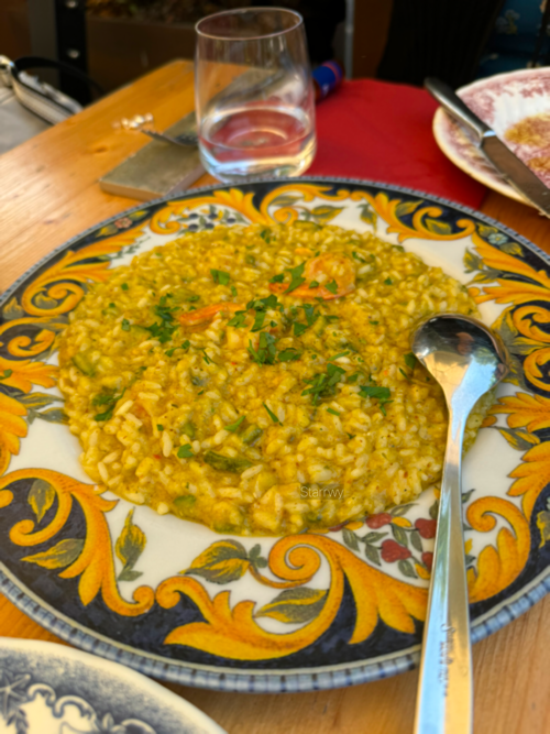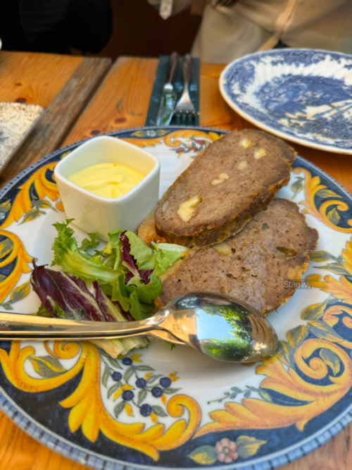 피렌체를 향하며 뒷자리에 앉은 팀이 점심 식사할 곳을 찾아주었다. 몬테바르키(Montevarchi)라는 지역의 Le Mura del Cassero라는 토스카나 음식을 파는 식당이었는데, 소박한 광장의 한 코너에 있어 마침 좋은 햇빛을 즐기기 위해 테라스 자리에 앉았다. 서버가 메뉴판과 커트러리, 접시 등을 빠르게 세팅해주었다.