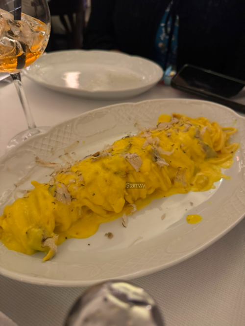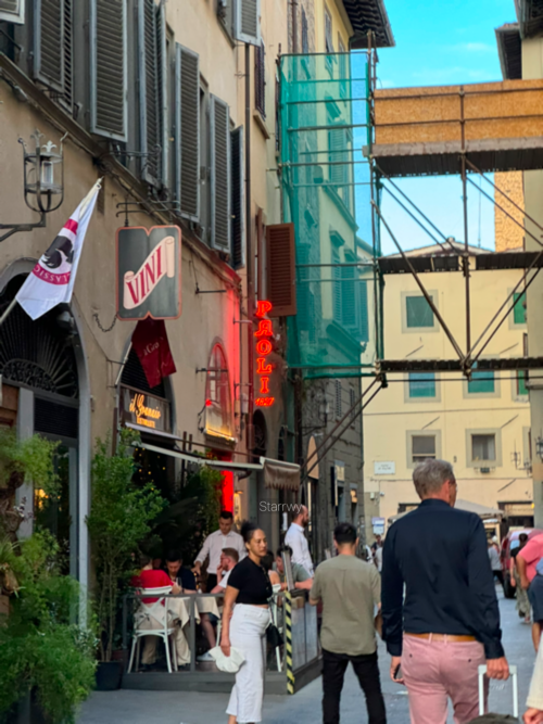 시내까지는 도보로 약 30분 남짓. 예약 시간까지는 약간 타이트하지만 동네에 익숙해질 겸 조금 빠르게 걸어가기로 했다. 다행히 내리막길이라 속도를 낼 수 있었다. 보볼리 정원, 피티 궁전, 베키오 다리를 지나 상점가에 가까워질수록 인파가 점점 많아짐은 물론 도시의 활기도 같이 느껴졌다. 1827년부터 영업을 한 Antico Ristorante Paoli는 피렌체식 티본 스테이크 맛집으로, 알쓸신잡 프로그램에도 나왔다고 한다. 역사를 증명하는 듯한 천장의 벽화가 멋지다. 대기 줄이 아주 길었는데, 예약자명을 말하니 바로 자리를 안내받았다. 다만 레스토랑 내 테이블을 가능한 꽉 채워넣은 듯 옆 테이블과의 간격이 굉장히 좁았다.