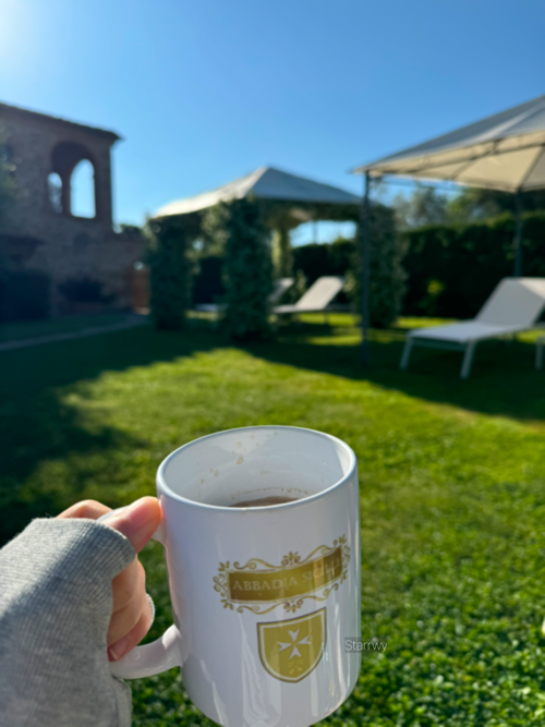 간밤은 조금 추워서 핫팩을 끌어안고 잤다. 예전 수도원이라 산 속 깊은 곳에 있어서 더 추웠던 것 같기도 하다. 어제 남겨뒀던 조식을 챙겨먹고, K가 아침 산책 겸 리셉션에서 사온 커피 캡슐로 커피를 내려서 숙소 앞 정원의 작은 테이블에 앉았다. 새소리가 끊이지 않는 평화로움. 커피 한 잔으로 이렇게 행복할 수 있다니.