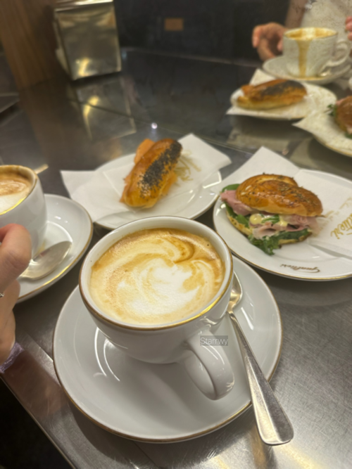마지막 식료품 쇼핑을 위해 K, Y와 함께 숙소를 나왔다가 베이커리 겸 카페가 있어 아침 식사를 하러 들렀다. 동네에 있는 작은 가게였는데, 의외로 아침부터 사람이 아주 많았다. 각자 빵 하나씩과 커피를 주문해 카페 바에 서서 먹는데 정말 말도 안 되게 맛있었다. 나는 빵 사이에 훈제 연어가 끼워진 작은 샌드위치를 골랐는데, 살짝 단맛이 느껴지는 빵과 하나도 비리지 않고 짭잘한 연어의 밸런스가 적당했다.