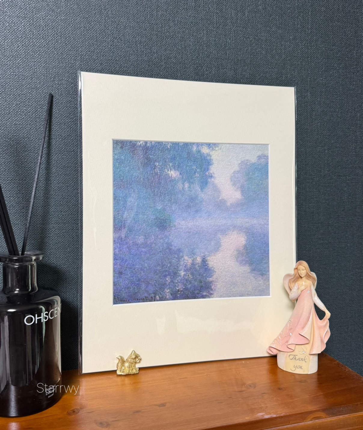 전시를 관람한 후 기념품을 사고 싶어 또 40분 가까이 줄을 섰다. 전시가 하도 인기여서인지, 기념품을 파는 곳에 들어가려면 건물 바깥까지 늘어선 대기줄 뒤에 서야한다고 했다. 마음에 들었던 그림은 사진을 찍을 수 없는 구역에 있었기 때문에 나중엔 이 감동이 잊혀질 것 같아서 기념품 목록에 있으면 사고 싶었다. 서로 다른 엽서 몇 장과 작은 그림을 담았는데, 엽서는 지인들에게 나눠줬고, 그림은 화장대 위쪽에 올려두고 거의 매일 보고 있다. 이것보다 더 감동이 큰 그림을 발견할 때까지는 유지할 예정.