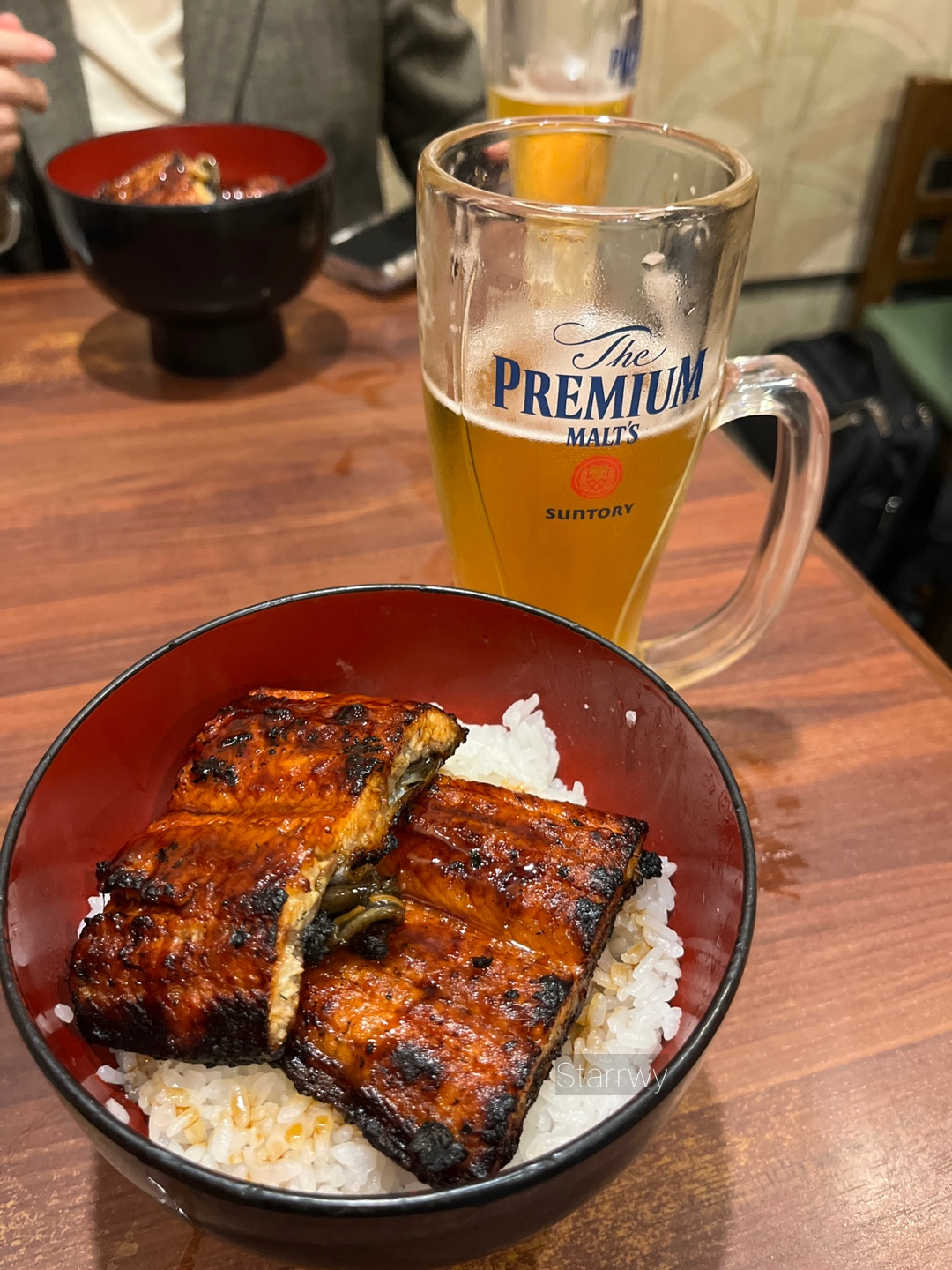 이번 여행에서 먹고 싶었던 음식 중 하나인 장어덮밥 전문점이 역 근처 번화가 초입에 있어, 별다른 고민 없이 메뉴를 결정했다. 가게의 열린 창문으로 숯불과 양념이 살짝 타는 냄새가 좁은 골목길 전체에 공유되어 배가 한층 더 고파졌다. 대기는 한 팀 있었고, 식사를 마친 손님들이 나오는 타이밍이어서 많이 기다리지 않고 자리에 앉았다. 가게 내부의 왁자지껄한 분위기에 저절로 내 기분도 고조되었다.