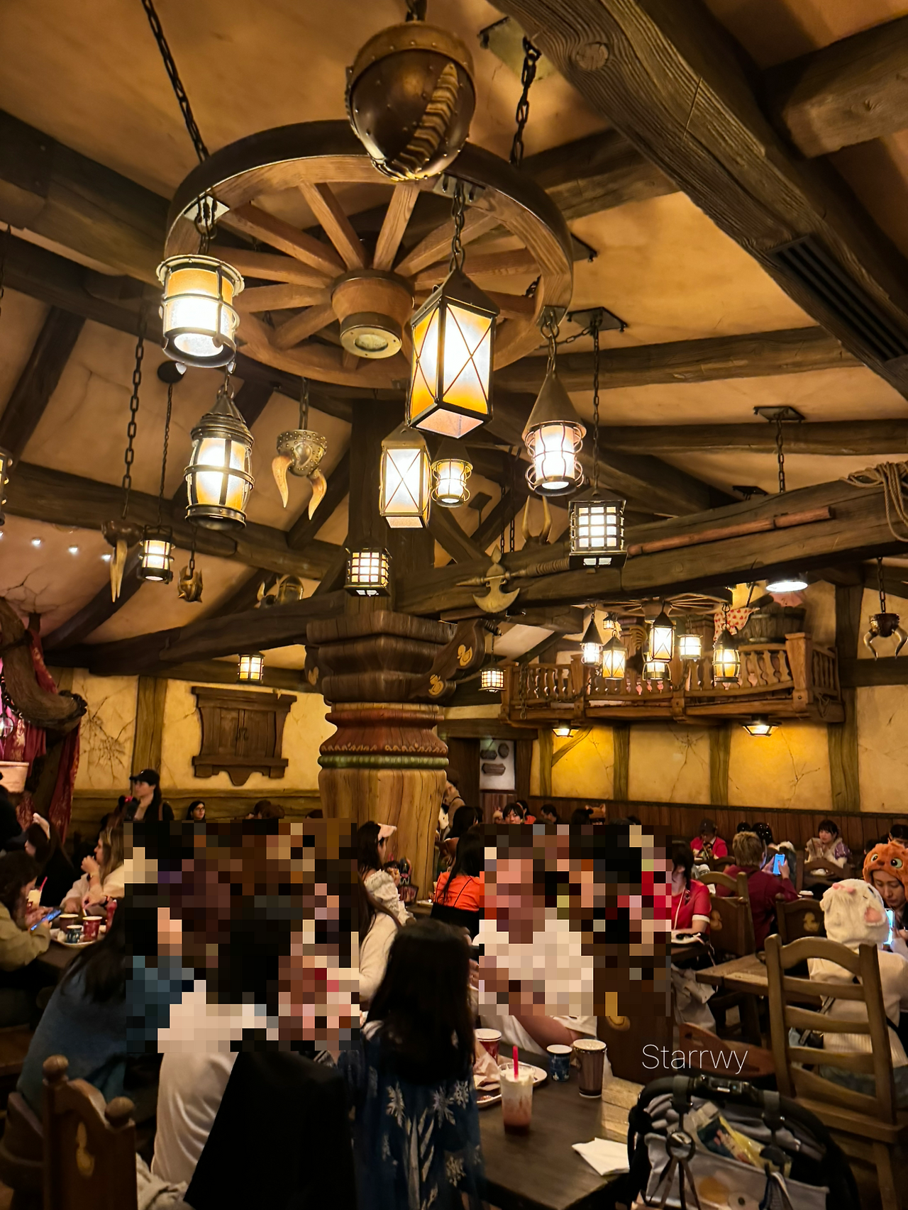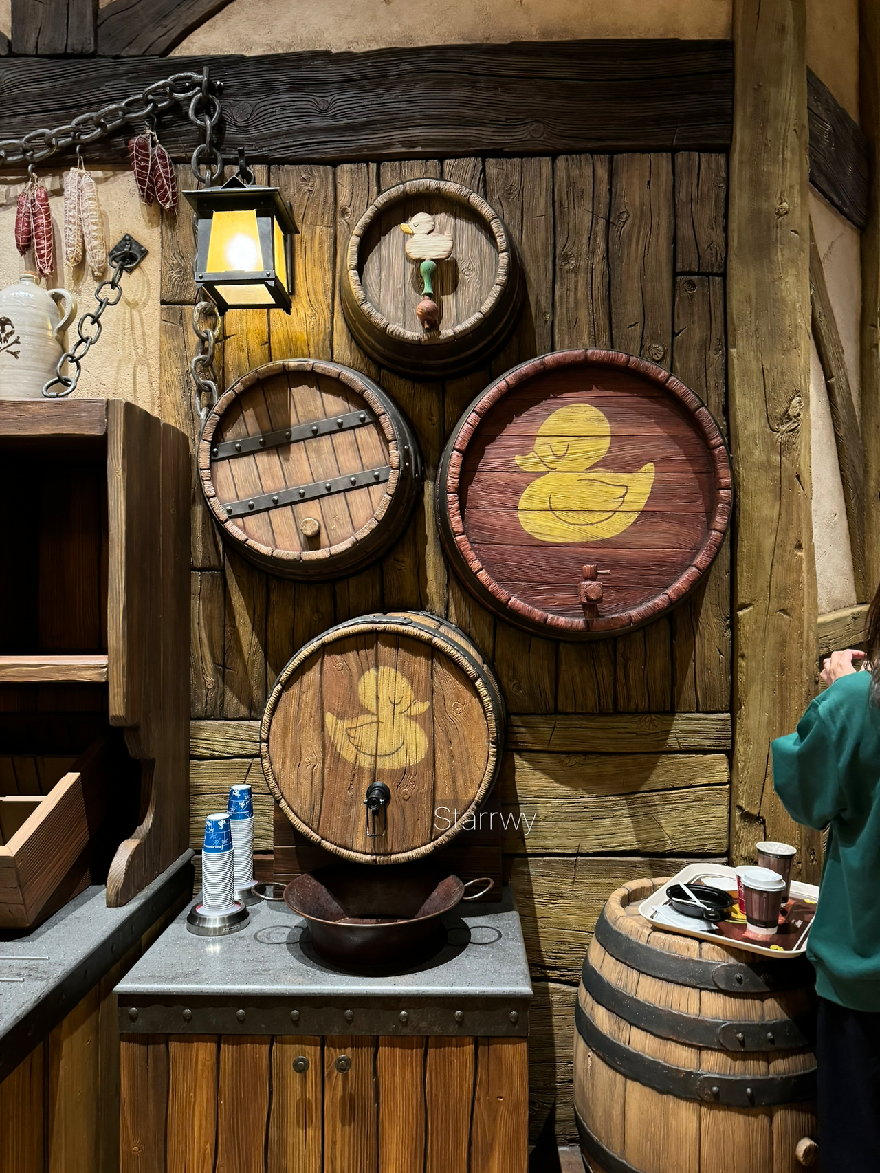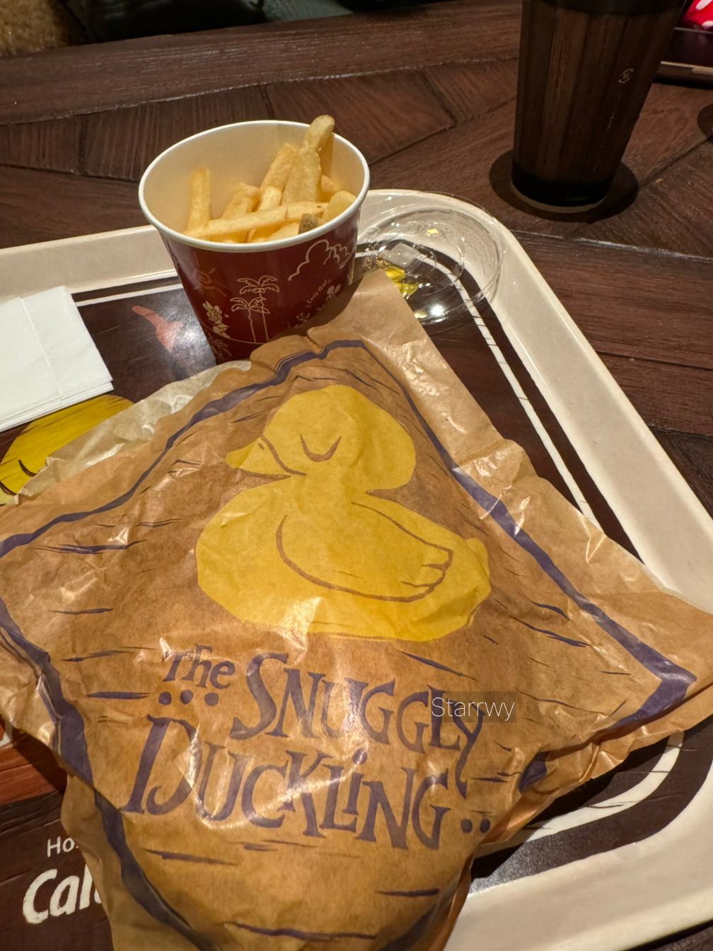 판타지 스프링스 내에는 식사할 수 있는 공간이 몇 군데 있는데, 우리는 스너글링 더클링에 앱으로 메뉴들을 주문해뒀다. 비가 조금씩 오기 시작하는 바람에 레스토랑 앞에서 시간을 한참 보내다가 입장 시간에 맞춰 들어가니, 점심시간이라 이미 내부는 사람들로 가득차있었다. 빈 자리를 찾아 몇 바퀴를 돌다가 겨우 자리를 잡았다. 픽업대에서 내 주문번호가 보이면 확인 후 가져올 수 있다.