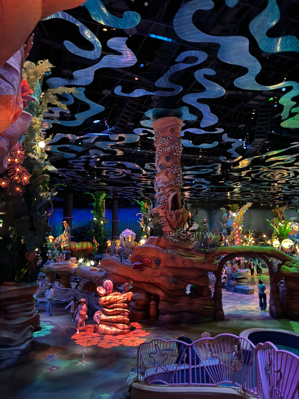 인어공주 일가족이 사는 성에 들어가니 마치 바닷속 깊은 곳에 들어온 듯한 기분이 물씬 들었다. 조명도 분위기도 꽤 몽환적!