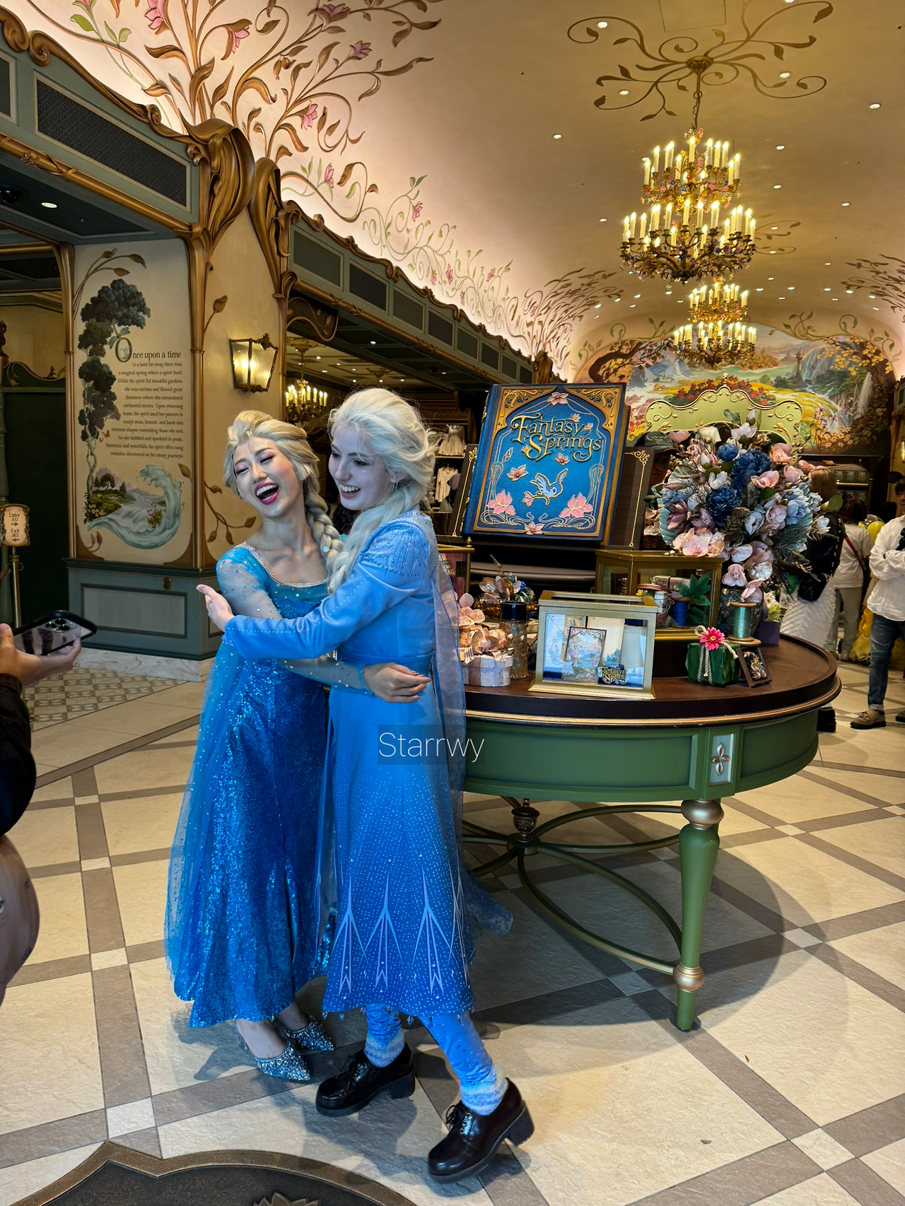어렵게 들어온 판타지 스프링스를 그냥 떠나기 아쉬워 기프트샵을 구석구석 한바퀴 돌았다. 디즈니씨에는 여러 개의 기프트샵이 있지만 장소마다 판매하는 제품이 조금씩 다른 경우가 있다고 하여 놓칠 수 없었다. 규모가 꽤 큰 기프트샵엔 구경하는 사람들이 아주 많았는데, 가게 앞에서 엘사 두 명이 즐거워하며 껴안는 장면이 너무 재미있었다. 서로의 코스튬과 그 완성도에 대해 칭찬을 아끼지 않는 모습이 귀여웠다. 각자 이 날을 위해 얼마나 준비했을지 눈에 선했고 그 결과물을 진심으로 즐기는 모습이 좋아보였다.