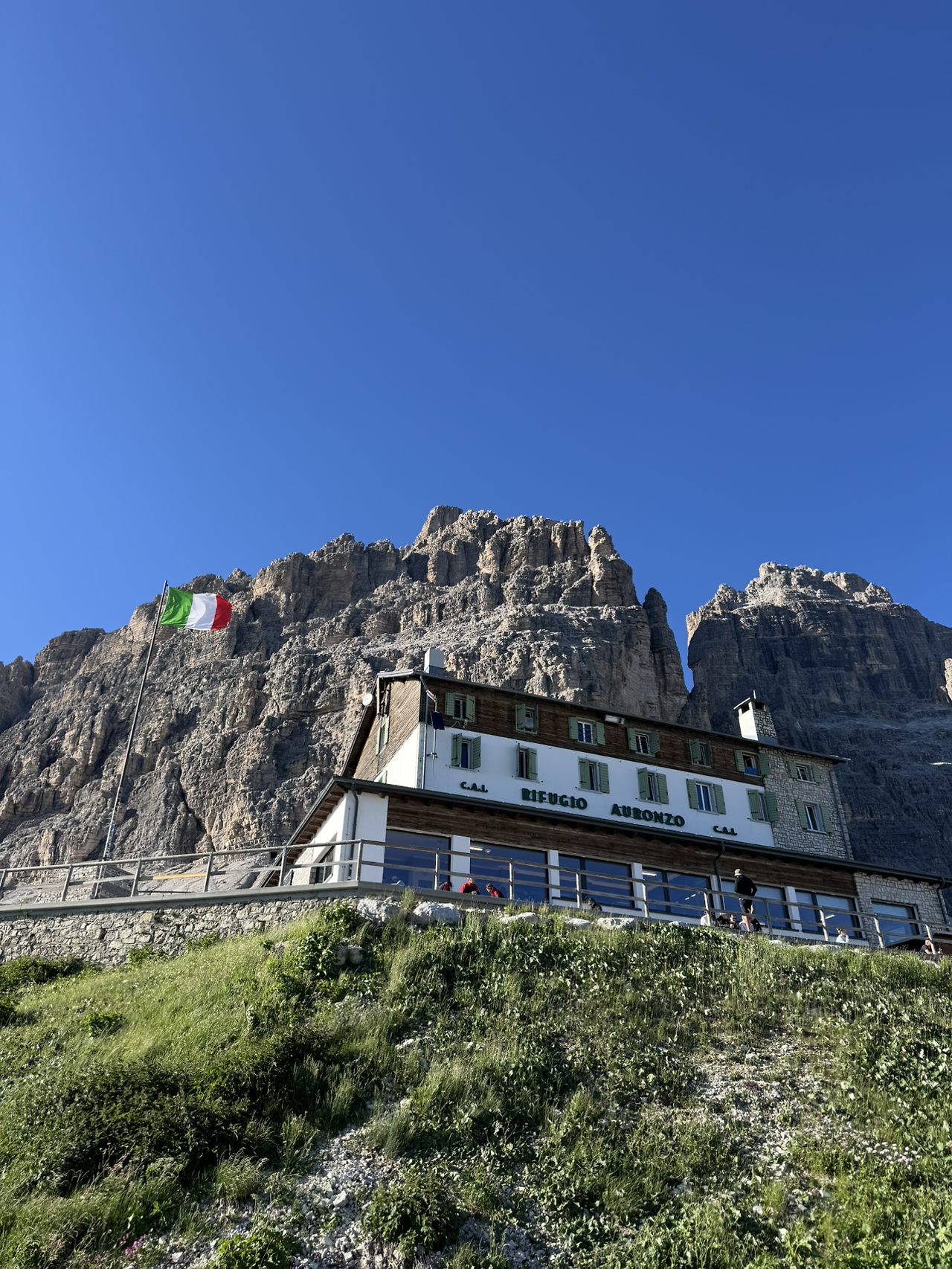책에서 소개하기로, 산장에서 묵는 것도 특별한 경험일 것 같았다. 돌로미티의 그 많은 산장 중에서도 우리가 고른 건 아우론조 산장. 선택의 가장 큰 이유는 주차장에서 가장 가까운 산장이기 때문이다. 우리의 짐은 트레킹용 짐이 아니라 캐리어를 포함한 일반 여행용 짐이기 때문에 이걸 무리없이 들고 갈 수 있는 곳이어야 했다. 원하는 날짜에 숙박을 하려면 예약이 치열할 수 있다고 해서 바로 메일을 보냈더니, 일찍 문의를 해서인지 생각보다 쉽게 예약을 할 수 있었다. 엄마와 단 둘이 사용할 수 있는 2인실, 도착 날 저녁 식사와 그 다음날 아침 식사가 모두 포함된 하프보드를 예약했다. 산장에서는 물이 부족하게 되면 샤워를 못하게 될 수도 있다고 안내를 했다. 실제 24년에도 그랬다고. 그 불편함을 감수해보기로 했다.