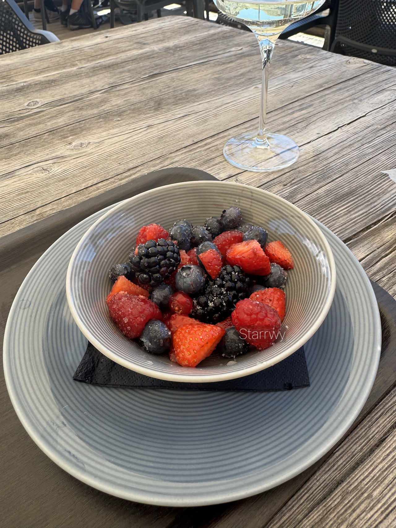 엄마는 화이트 와인 한 잔, 나는 에스프레소 마끼아토, 그리고 함께 먹을 베리 모듬을 주문했다. 만드는 것을 보아하니 딸기, 라즈베리, 블루베리, 블랙베리, 크랜베리 등 온갖 베리를 보울에 담고 설탕 조금과 레몬즙을 뿌리면 끝-. 상큼한 맛이 정신을 번쩍 들게 하여 피로감을 없애는데 아주 효과적이었다.