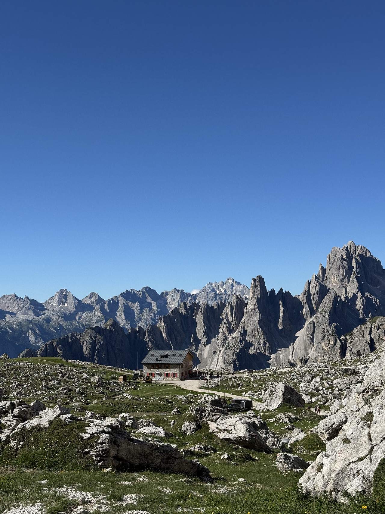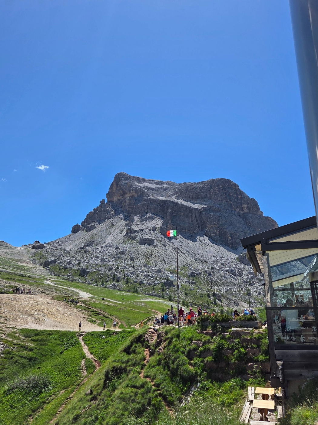 이제 저 멀리 로카텔리 산장이 보인다. 여행 준비 단계에서 로카텔리 산장에도 숙박 문의를 보냈었는데, 무슨 연유인지 회신은 오지 않았다. (동일 이메일로 두 번 이상 문의가 오면 자동으로 스팸처리 된다는 설이 있다. 나는 시스템으로 한번 문의하고, 거기에 오류가 생겨 메일로 한번 문의를 보냈을 뿐인데도 스팸 처리가 된 걸지도 모르겠다) 그래서 어쩔 수 없이 아우론조 산장에 묵은 것도 있는데, 로카텔리 산장까지 이렇게 오래 걸리는 줄 알았으면 애초에 문의조차도 안 했을 거다. 평소에 등산과는 거리가 먼 우리는 체력이 절대 받쳐주지 않았을 듯.