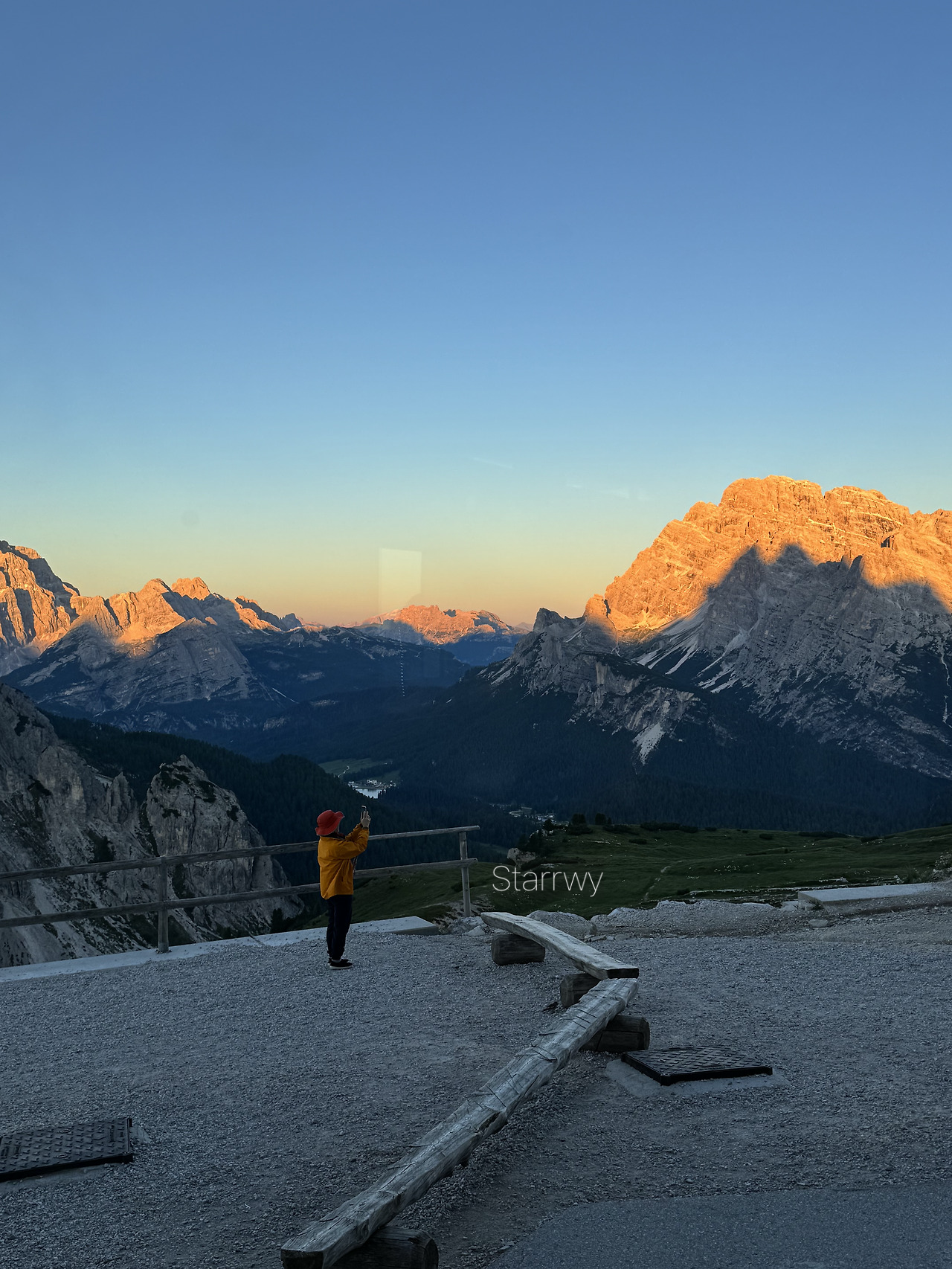 이제 우리 차례가 되었다. 엄마와 나는 나름 구도를 잡아가며 서로를 찍어주었다. 그러다가 한국인 아주머니 한 분이 바깥에서 트레치메를 찍으시는 바람에 자꾸 우리 프레임에 걸리는 상황이 발생했다. 그래서 간단히 우리가 사진을 찍는 방식에 대해 설명을 드리고, 서로 사진을 찍어주는 게 어떠실지 여쭤봤더니 흔쾌히 수락하셨다. 그 과정에서 이런 저런 이야기를 나눴는데, 아주머니는 굉장히 유쾌하신 분이었다. 당신 기준에 아닌 것이 명확하셔서, 내가 이상한 포즈를 하고 있으면 단호히 수정하라고 말씀해주시는 게 꽤 재미있었다. 사진을 다 찍고 산장으로 돌아갈 때도 돌로 된 산길을 과감히 미끄러져 내려가시는 모습이 아주 용감해보이셨다. 연락처를 교환하거나 하진 않았지만 짧은 인연이 아주 즐거웠다. 역시 유쾌함과 진솔함은 사람의 마음을 여는 힘이 있다. 체력 때문이든, 다른 일 때문이든 내가 자꾸 잊어버리는 중요한 삶의 자세.