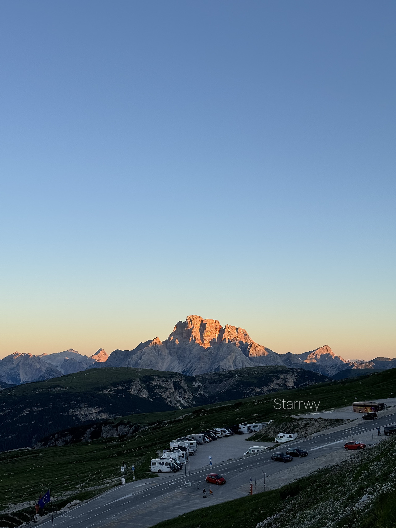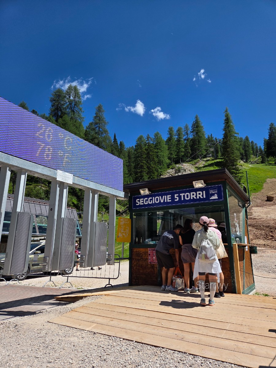 친퀘토리(Cinque Torri)는 "다섯 개의 탑"이라는 뜻인데, 다섯 개의 바위 기둥이 모여 있는 모습 때문에 붙은 이름이라고 한다. 아우론조 산장에서는 차로 1시간 정도 걸린다. 주차장 입구에서 큰 관광 버스들과 차가 엉켜 들어가는 데 시간이 좀 걸리긴 했지만 막상 주차 자리는 모자라지 않았다.
