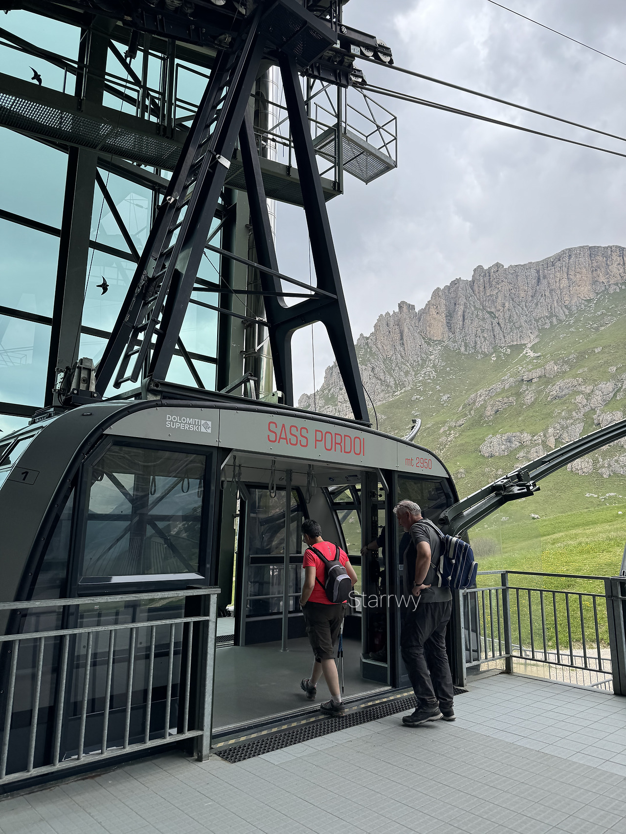 커다란 케이블카를 타고 정상에 도착했다. 사쓰 포르도이 정상은 해발 2,950m 정도인데, 거대한 석회암 고원처럼 위가 평평하고 옆은 깎아지른 절벽처럼 수직으로 솟아 있어서 “돌로미티의 테라스(Terrazza delle Dolomiti)“라는 별명이 있다고 한다.