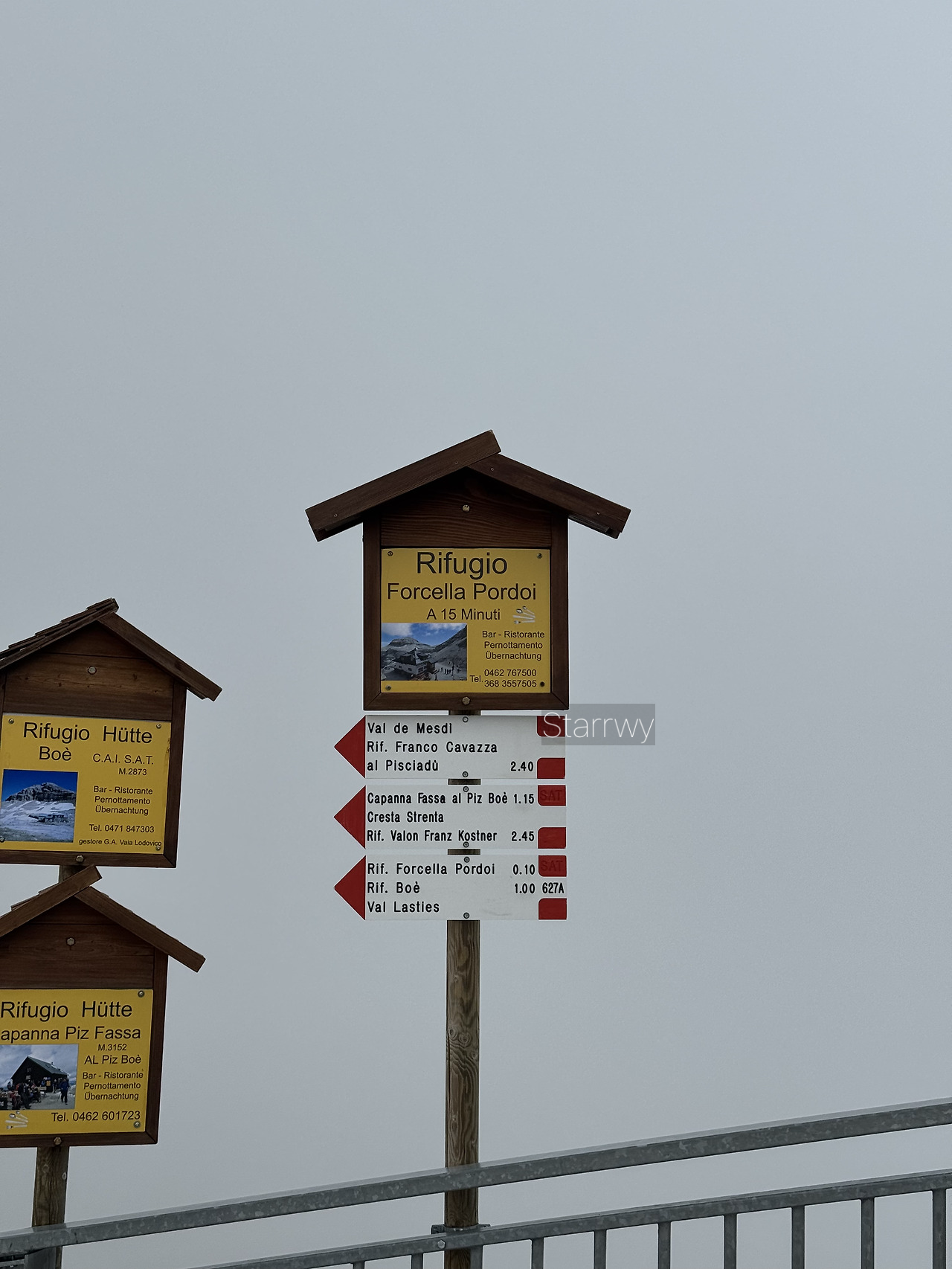차가운 구름 속에 서있자니 살갗이 드러난 곳에서부터 추위가 엄습한다. 산장으로 들어가 에스프레소 마끼아토 한 잔에 설탕을 듬뿍 넣어 마셨다. 엄마는 아쉬우신지 이곳 저곳을 돌아보며 사진을 찍으셨다. 스타워즈 같은 SF 영화는 좋아하지도 않으면서 말이다. 어찌 되었든 이 조차 돌로미티에서 흔히 겪을 수 있는 에피소드일 것 같았다.
