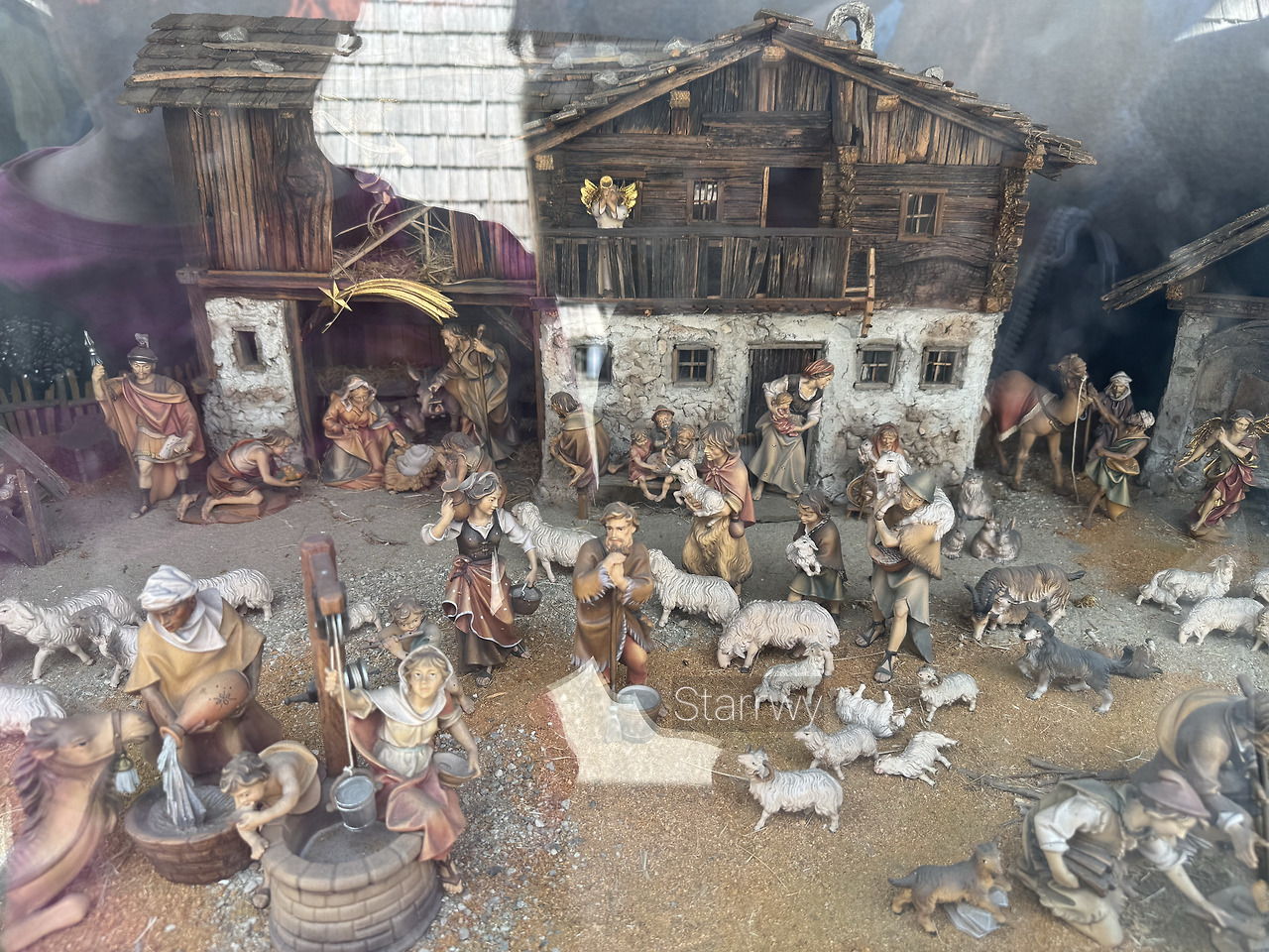 오르티세이로 가는 길에 종종 나무 공예 전문점이 보인다. 그 중 꽤 규모가 큰 곳이 있길래 차를 세웠는데, 가까이 가보니 아쉽게도 운영중이진 않았다. 그래도 바깥 유리를 통해 내부를 볼 수 있도록 전시가 잘 되어있었다. 종교적인 의미가 담긴 성물이 작품의 대부분을 차지하는 듯 했다. 성모 마리아상, 예수 상, 성 가정 상 등이 크기별로 다양했다. 그 외 가장 자주 보이는 주제는 아기 예수의 탄생을 기리는 장면(Nativity Scene)이다. 각 사람들과 동물들의 포즈가 다양한 건 물론, 얼굴 표정도 아주 세밀하게 표현이 되어 있었다. 아주 세밀하게 장식된 조각품에서 일종의 장인 정신이 유리 너머로 느껴졌다.
