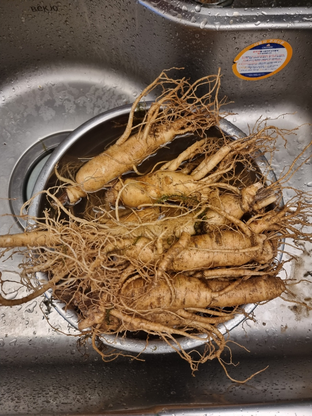 마침 추석 맞이 선물이 아버지 손에 무겁게 들려왔다. 바로 인삼. 황금빛의 보자기에 싸여있는 자개농에나 있을 법한 은은한 빛을 내는 상자에는 인삼이 한가득이었다. 어머니는 인삼을 우리가 다 먹을 수 없어 고민하다 일부를 아랫집 어르신으로 내려다 보내셨다. 그래도 남은 인삼을 어떻게 할까 고민하시다, "인삼을 꿀에 재우자"라고 하셨다. 내게 떨어진 임무 '잘 씻어라'.