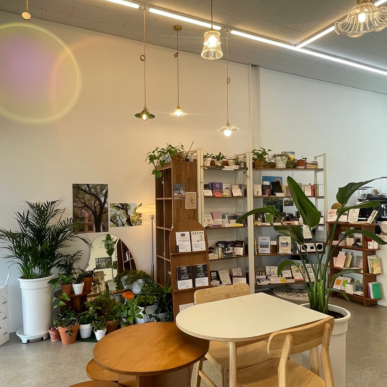 (좌) 동생 서점에서의 내 자리. (우) 카페 겸 서점 내부