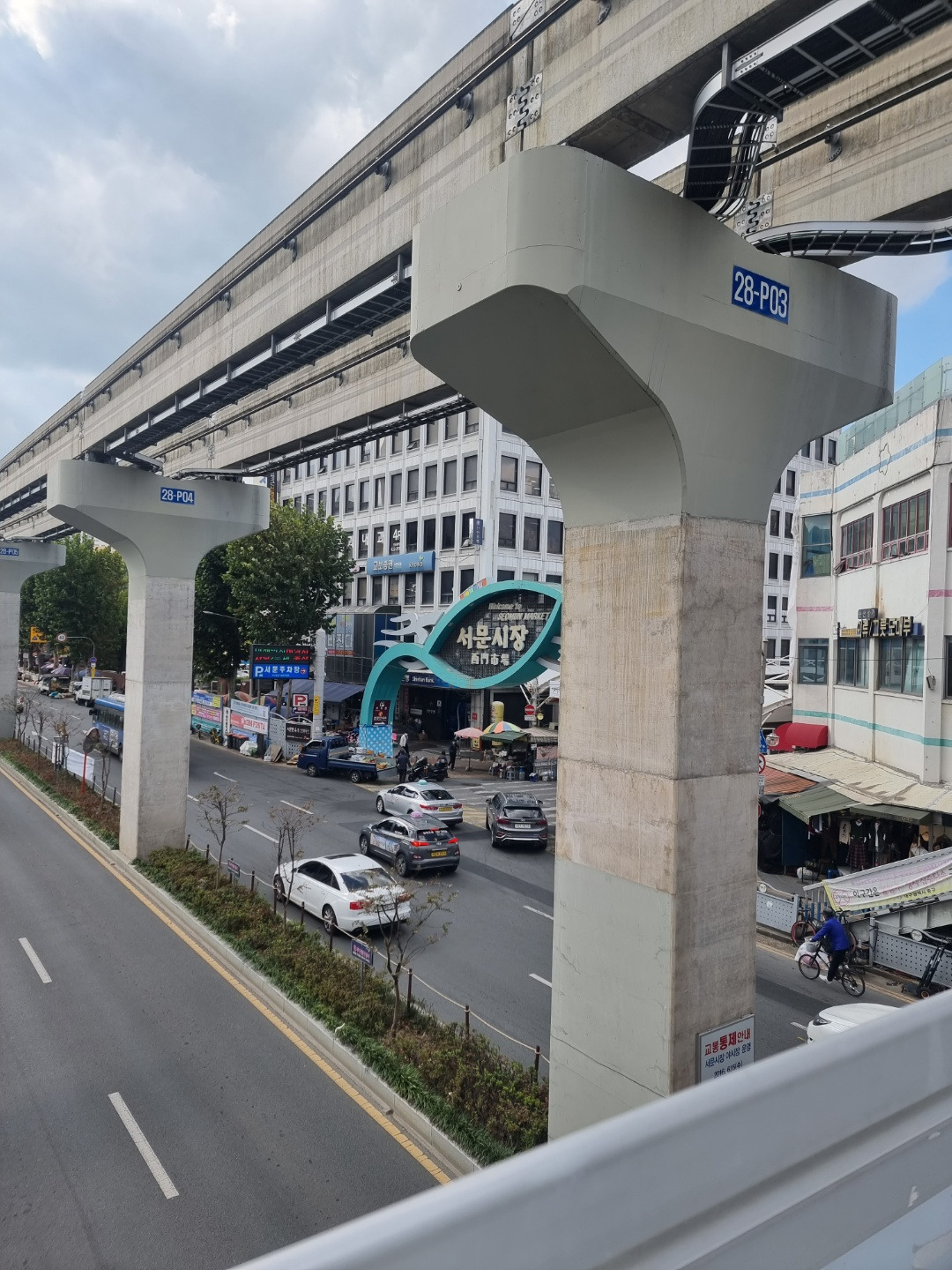 (좌) SRT에서 본 풍경, (중) 서문시장 입구, (우) 동산상가 입구