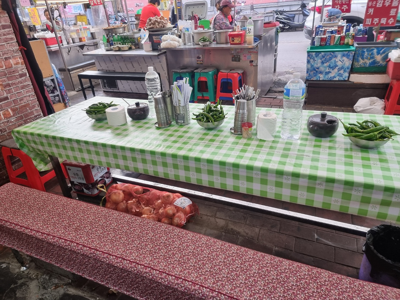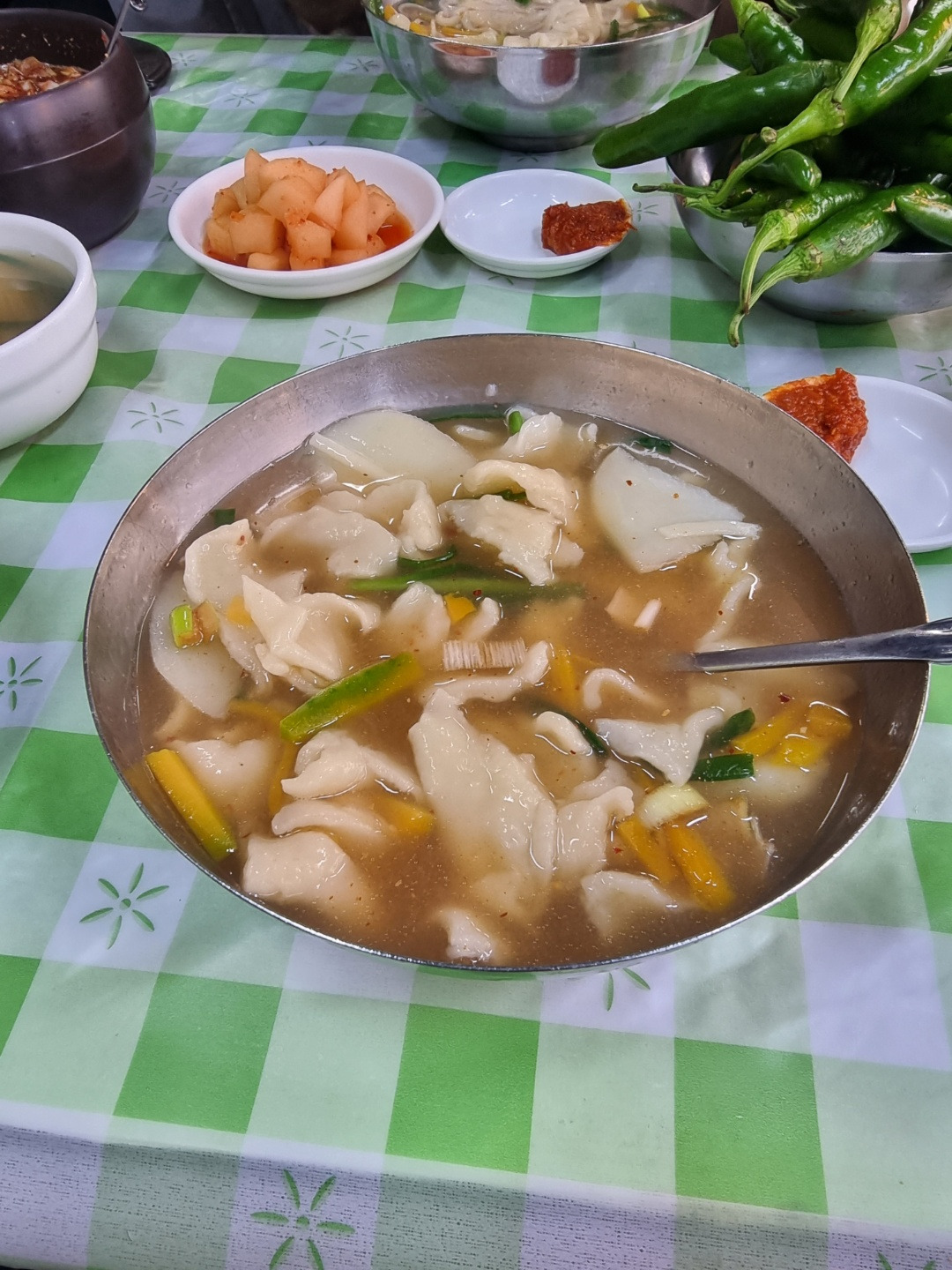 우리가 수제비를 기다리는 옆 가게 아주머니께서 조금씩 물건을 옮기셨나 보다. 간격을 좁힌 아주머니는 나는 그런 적 없다고 일관하다, 이웃 가게 간에 의가 상한다며 되려 큰소리를 치신다. 언쟁은 언쟁이고 우리가 주문한 음식은 빠르게 나왔다.