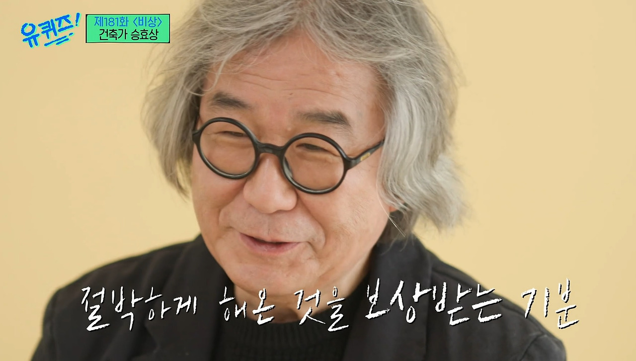 승효상은 그 장면을 보며 절박해졌다고 한다. 많은 사람들에게 좋은 영향을 주는 건물을 짓고 싶다는 절박함. 누군가에게 선한 영향을 미치는 설계를 하겠다는 의지가 작품을 멋지게 만들어낸 모양이다. 그는 그렇게 한국에서 최고, 세계에서 주목받는 건축가가 되었다.