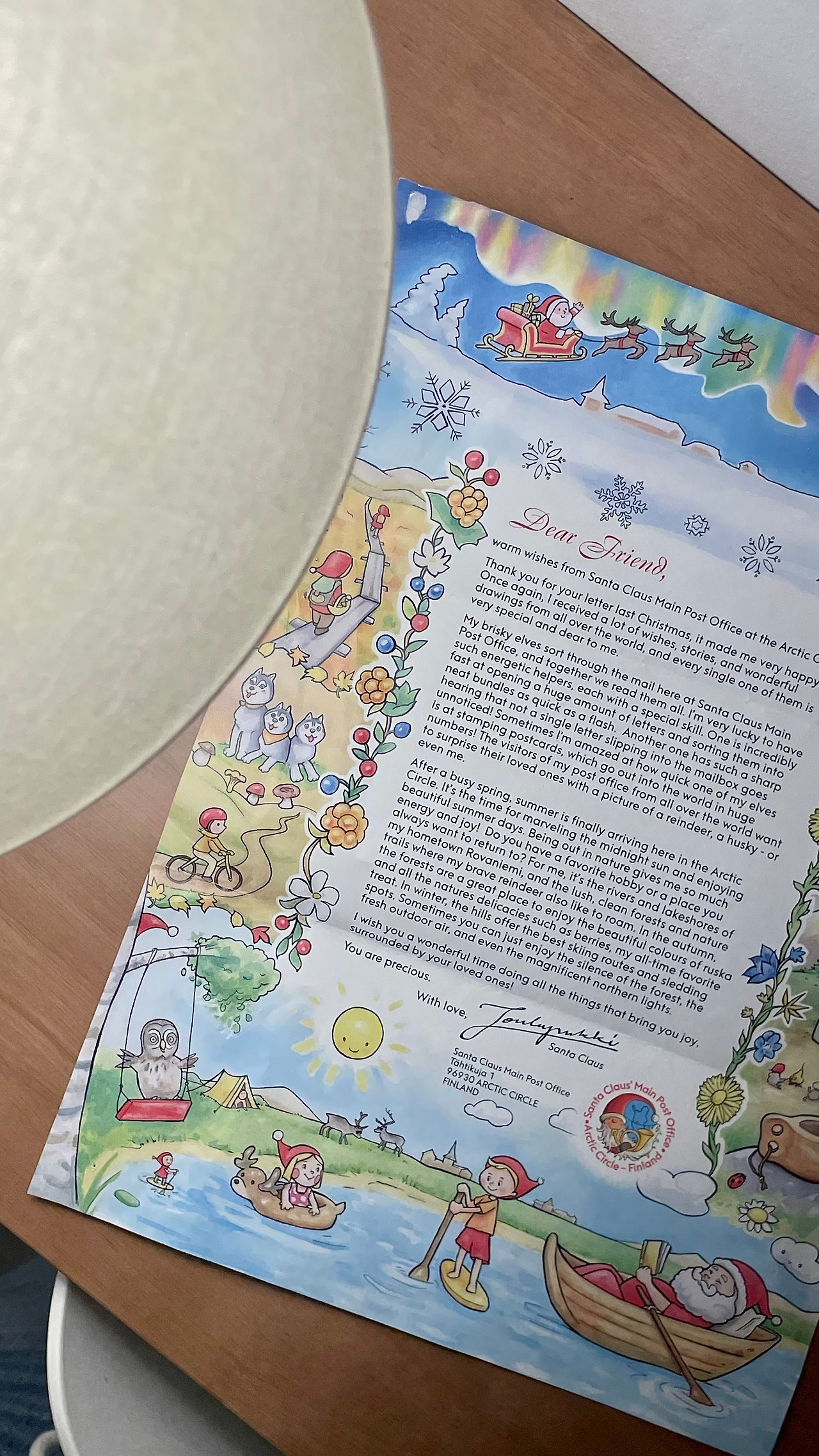 검색하다 안 사실 중 하나는 전 세계 어디든 "산타클로스 할아버지에게"라고 편지를 쓴다면 우표가 없어도 로바니에미에 있는 산타클로스 마을로 간다는 사실이다. 크리스마스 이벤트로 딱이라 생각하며, 글을 써 내려갔다. 한창 코로나가 기승인 그때, 산타 마을 경제 사정을 걱정했다. 아이의 마음을 완전히 잊은 채, 자원봉사자 산타 요정에게 응원을 보냈다. 마지막으로는 1년 동안 내 마음에 가지고 있을 목표를 적어두고, 다음 해에 잘 지내고 있을 나에게 보내는 말도 적어두었다.