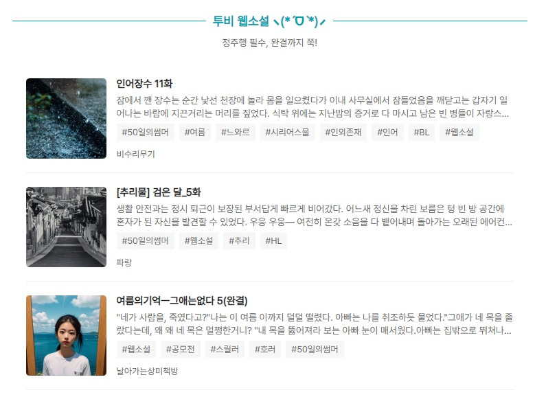 - 초단편으로 연재하며 다양한 이야기를 쓴다.