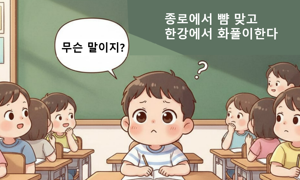 '종로에서 뺨 맞고 한강에서 눈 흘긴다'는 뜻을 이해하지 못하던 어린 나를 만난다면 이렇게 말해줘야겠다.