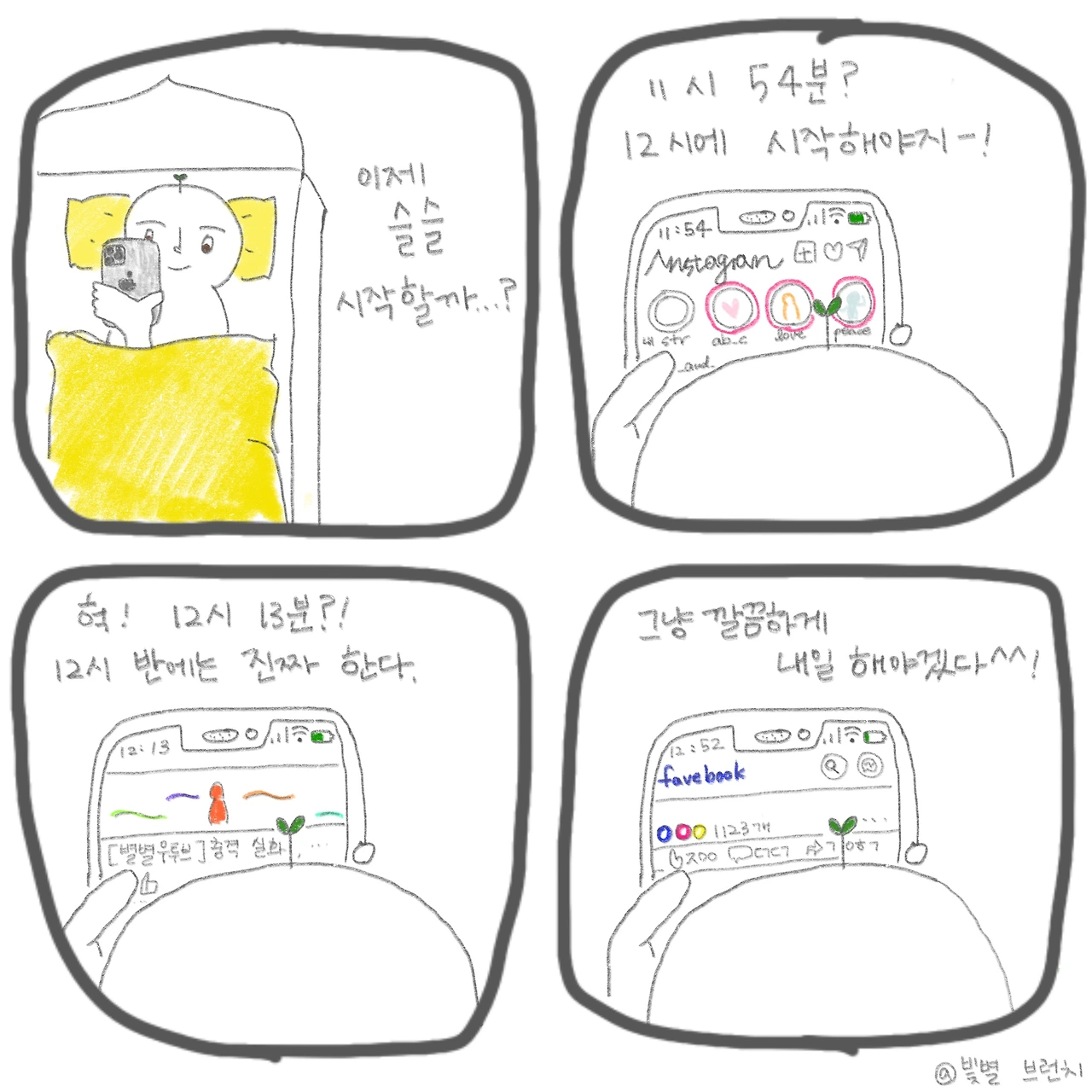 '정각에 시작해야지'를 반복하다가 결국 차일피일 미루고 마는 인간 부류란 말이다. 나 같은 정각충이라면, 어차피 반 넘게 지난 2021년은 포기하고 2022년에 모든 걸 건다! 의 태도로 일관할 수도 있다. 하지만 이제 조금이라도 변해보기로 했기에, 언제부터... 가 아니라 지금 당장! 시작하기로 한다.