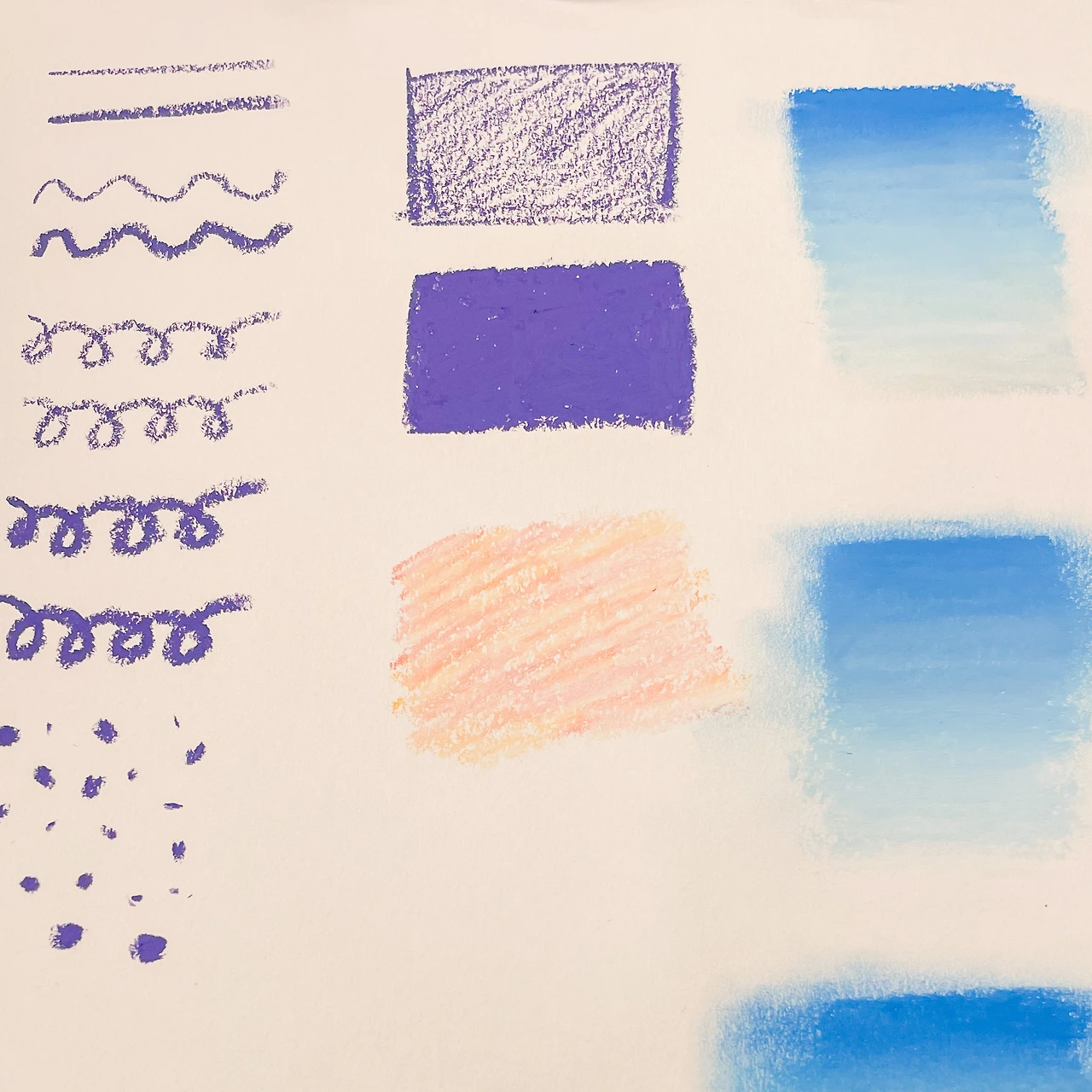 그러나 오일 파스텔은 달랐다. 크레파스와 비슷하지만 안 좋은 점만 골라 쏙쏙 뺀 느낌이었다. 부드럽게 칠해졌고, 모서리로 섬세한 표현도 가능했으며, 여러 색을 섞어도 부드럽게 조화를 이루었다. 이게 오일 파스텔에 대한 내 첫 감상이다. 본격적인 그림을 그리기에 앞서 선을 긋고, 색을 채우고, 여러 색을 섞기 위해 문지르는 연습을 하면서 느낀 오일 파스텔에 대한 설렘 같은 것.