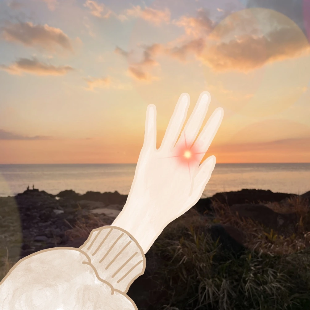 손가락 너머로 퍼지는 빛은 황홀한 기분을 안겼다. 마치 태양을 손에 쥔 것 같은 기분과 영롱하게 반짝이는 빛이, 지쳤던 마음 구석구석에 따스함을 퍼뜨렸다. 눈이 부시고 잔상이 남아 딱히 눈에 좋은 습관은 아닐 테지만, 노을빛을 손에 쥘 때마다 차오르는 벅찬 온기 탓에 노을을 마주칠 때마다 그냥 지나칠 수가 없다.