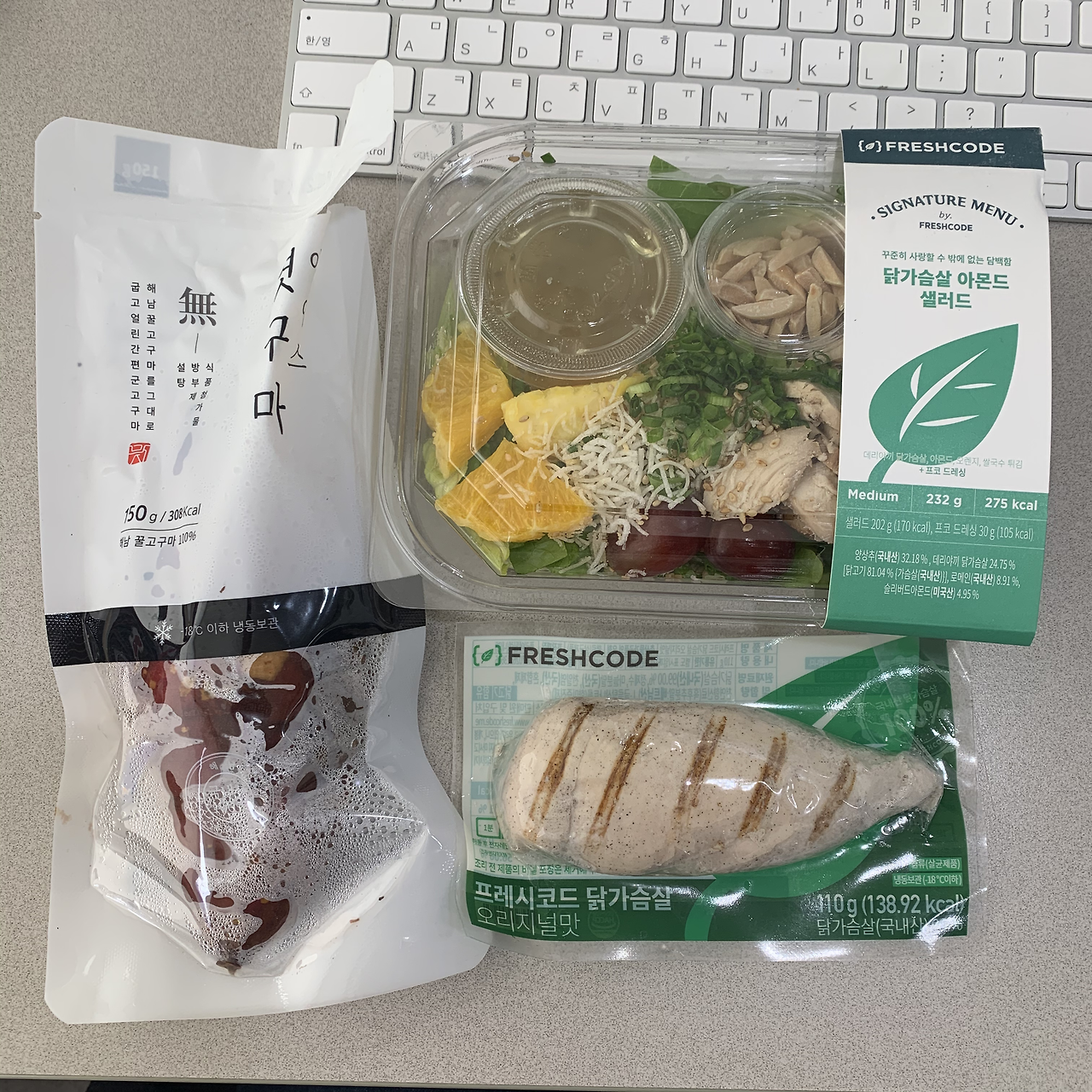 B마트 등을 이용해서 냉동 닭가슴살을 사서 데워 먹기도 했고, 점심은 주로 배달의 민족이나 쿠팡이츠 앱 등을 이용해서 샐러드를 주문해 먹거나 정말 바디프로필용 도시락으로 만들었나 싶은 다이어트 도시락(고구마, 샐러드, 닭가슴살, 삶은 계란 등이 들어있다)을 주문해 먹기도 했다. 식비는 더 많이 들지만 도시락을 쌀 수 없는 상황의 직장인도 (물론 좀 아쉽지만) 식단을 챙길 수는 있다는 걸 깨달았다.