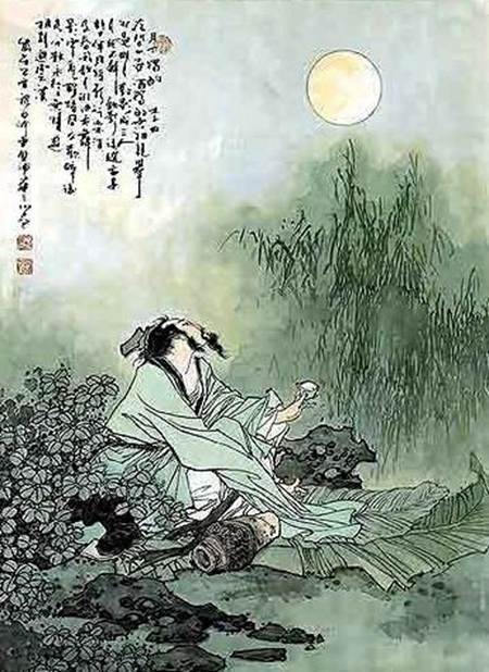 고독한 이백은 외로움을 달래기 위해 술잔 속에 비친 달과 자신의 달그림자를 친구로 삼았다. 그가 강 위에 홀로 앉아 그림자와 잔을 부딪치는 상상을 한다. 이백이 무슨 병으로 죽었는지는 알려진 바가 없다. 강물에 비친 달을 잡으려 물속으로 뛰어들어 익사했다는 이야기가 전설처럼 전해질뿐이다. 낭만적이고도 안쓰럽다.