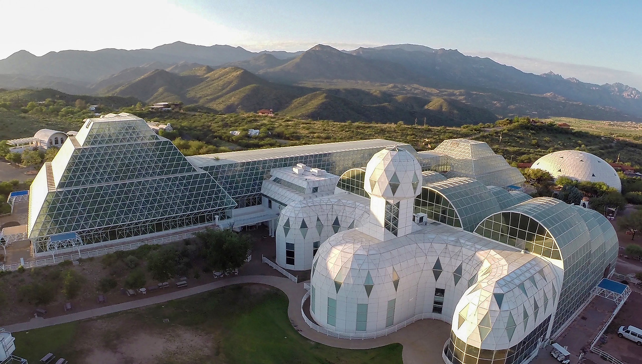 바이오스피어 2는 지구 환경을 그대로 재현한 거대한 유리 돔 안에서 외부의 자원 없이 2년동안 생존하는 실험이다. 남자 넷, 여자 넷이 이 시설에 들어가 완전히 격리된 채 생활했다. 이들은 열대우림, 사바나, 사막, 맹그로브 습지, 산호초 등 다양한 생태계에서 스스로 식량을 재배하고, 물과 공기를 재활용하며, 폐기물을 처리하는 자급자족 생활을 시작했다.