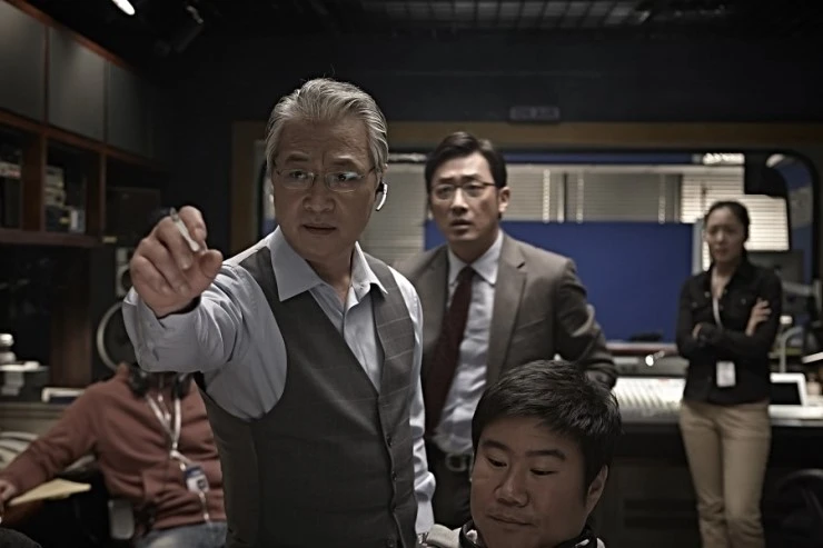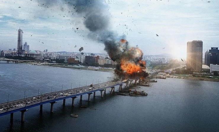 하지만 영화가 더 집중하고 있는 부분은 방송 시스템입니다. 여의도의 방송국을 거치면서 타인의 고통과 공포라는 현실은 드라마가 되었죠. 어떻게 타인의 공포가 누군가에게는 흥미로운 이야기, 혹은 자본의 도구로써 이용될 수 있을까요. 이는 매체 생산자들의 욕망을 적나라하게 보여주는 대목이기도 합니다. 시청자는 카메라 뒤의 세상을 못 봅니다. 아니, 관심이 없을지도 모르죠. 그리고 이 와중에 차 국장은 렌즈 뒤에서 시청자가 환호할 만한, 더 자극적인 소재를 찾습니다. 그는 70%의 시청률을 달성하고 싶은 연출자였습니다. 이 과정 덕분에 카메라를 경계로 생산자와 시청자는 서로 다른 것을 느끼게 되죠. 마포대교의 폭파는 여의도와 세상의 단절이며, 동시에 언론의 중심지 방송국과 시청자의 단절을 의미합니다.